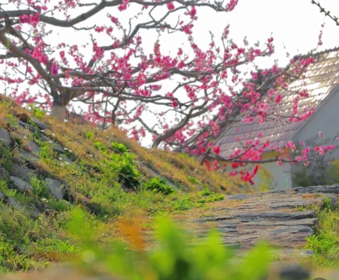桃花岛最美的时刻是清晨——雾气未散,露水挂在桃枝上,晶莹剔透,每朵花都鲜嫩欲滴。走在山间石子路,能听见自己的脚步声和远处沂河源的水声,静谧美好,仿佛这万亩桃花只为你而开。