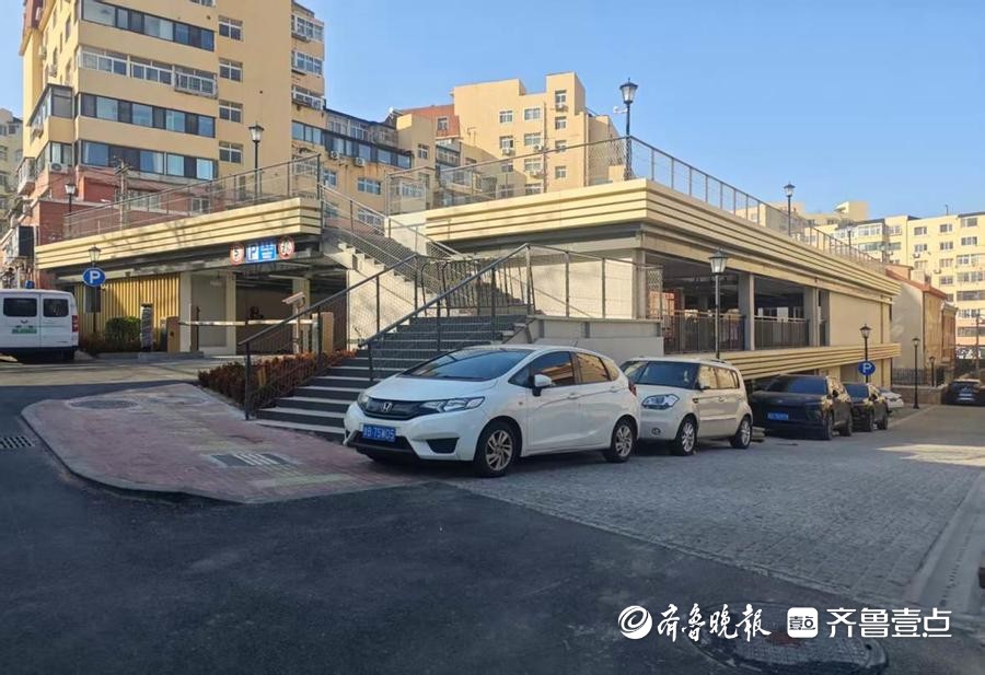 市北区辽北路2号地块:位于信号山历史文化街区内,利用两处征收拆除的老式居民楼空地,改造为一层停车场、二层室外健身区,同时解决“停车+休闲”需求。