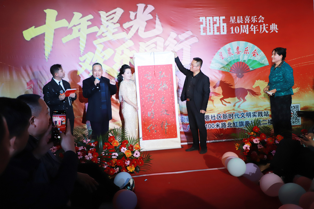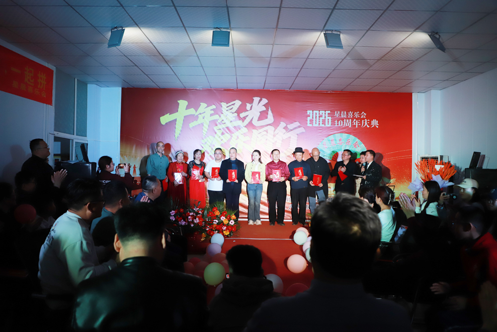 从最初的三四人小团体,到如今二百余人的大家庭,聊城星晨喜乐会怀揣公益初心,用歌声与欢笑走遍聊城所有乡镇,温暖了一方水土与百姓。3月27日,“十年星光 欢乐同行”星晨喜乐会10周年庆典晚会在聊城市东昌府区红旗巷社区聊葫小剧场温情上演,现场座无虚席,闻讯而来的群众将小剧场挤得满满当当。优美动听的歌曲、风趣幽默的相声、接地气的互动表演轮番登场,让观众们大饱耳福,掌声与喝彩声此起彼伏。