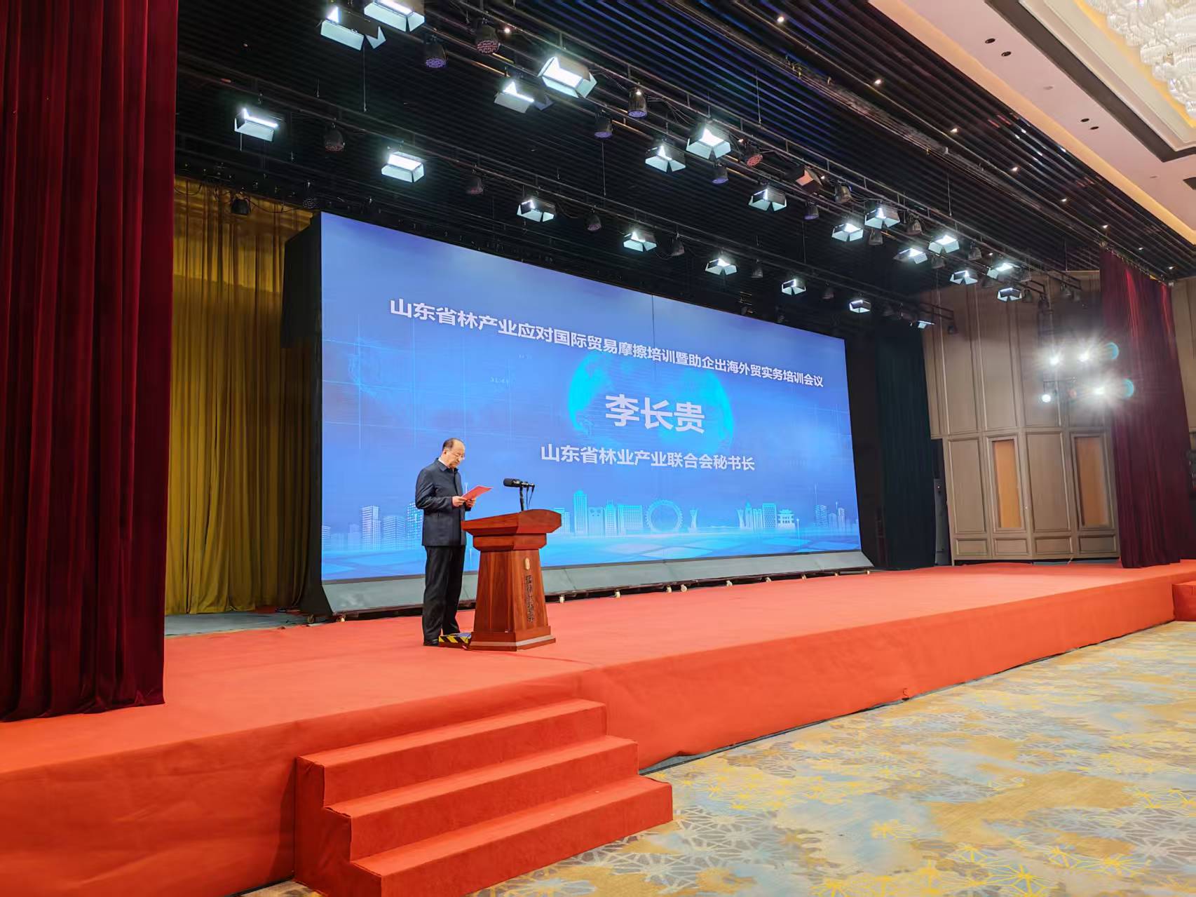 山东省林业产业联合会秘书长李长贵在致辞中表示,联合会将持续发挥工作站职能,聚焦企业需求,搭建交流合作平台,开展更多精准专业的培训活动,助力我省林产业企业规避贸易风险、抢抓出海机遇,推动全省林业产业高质量可持续发展。