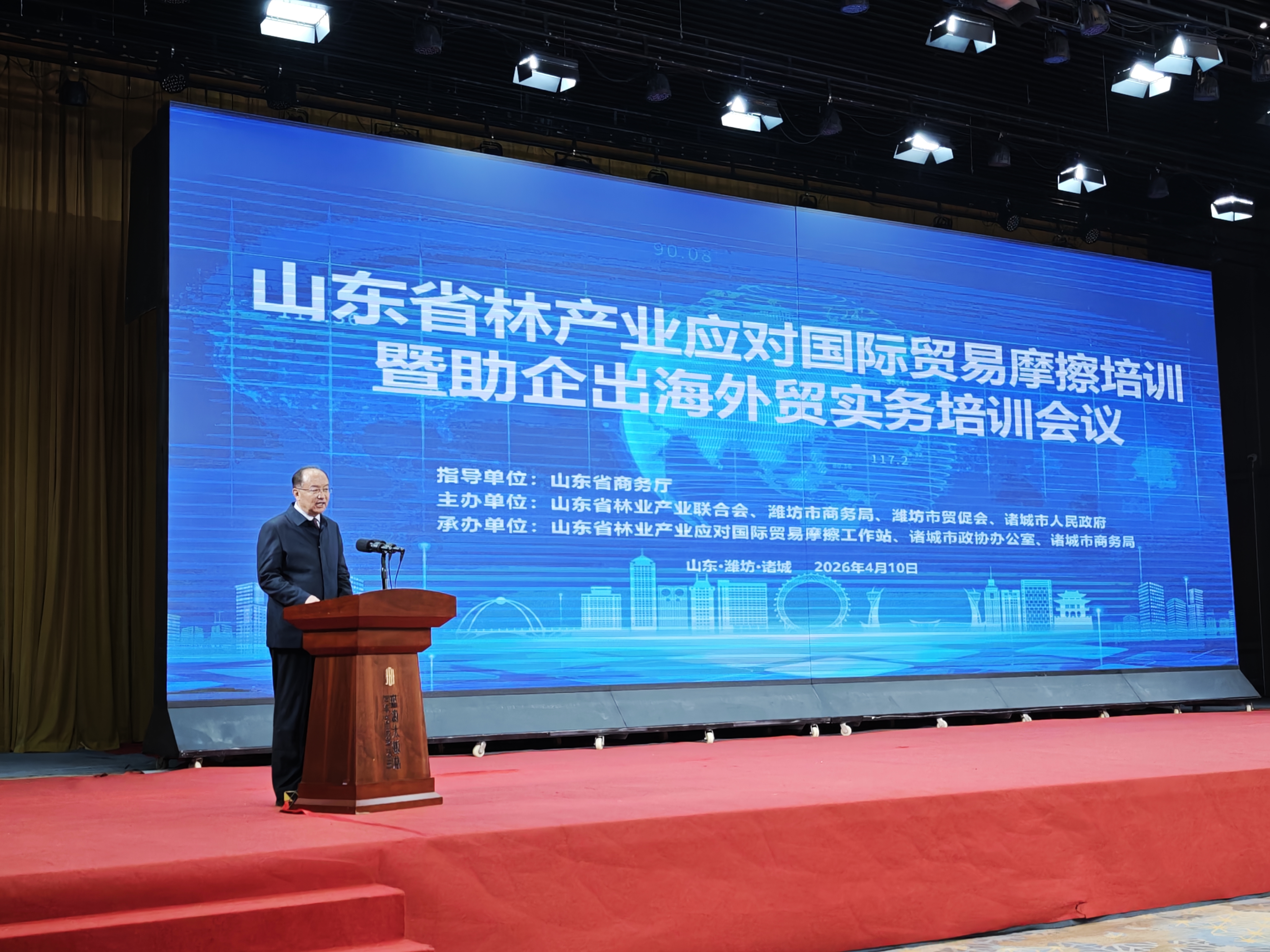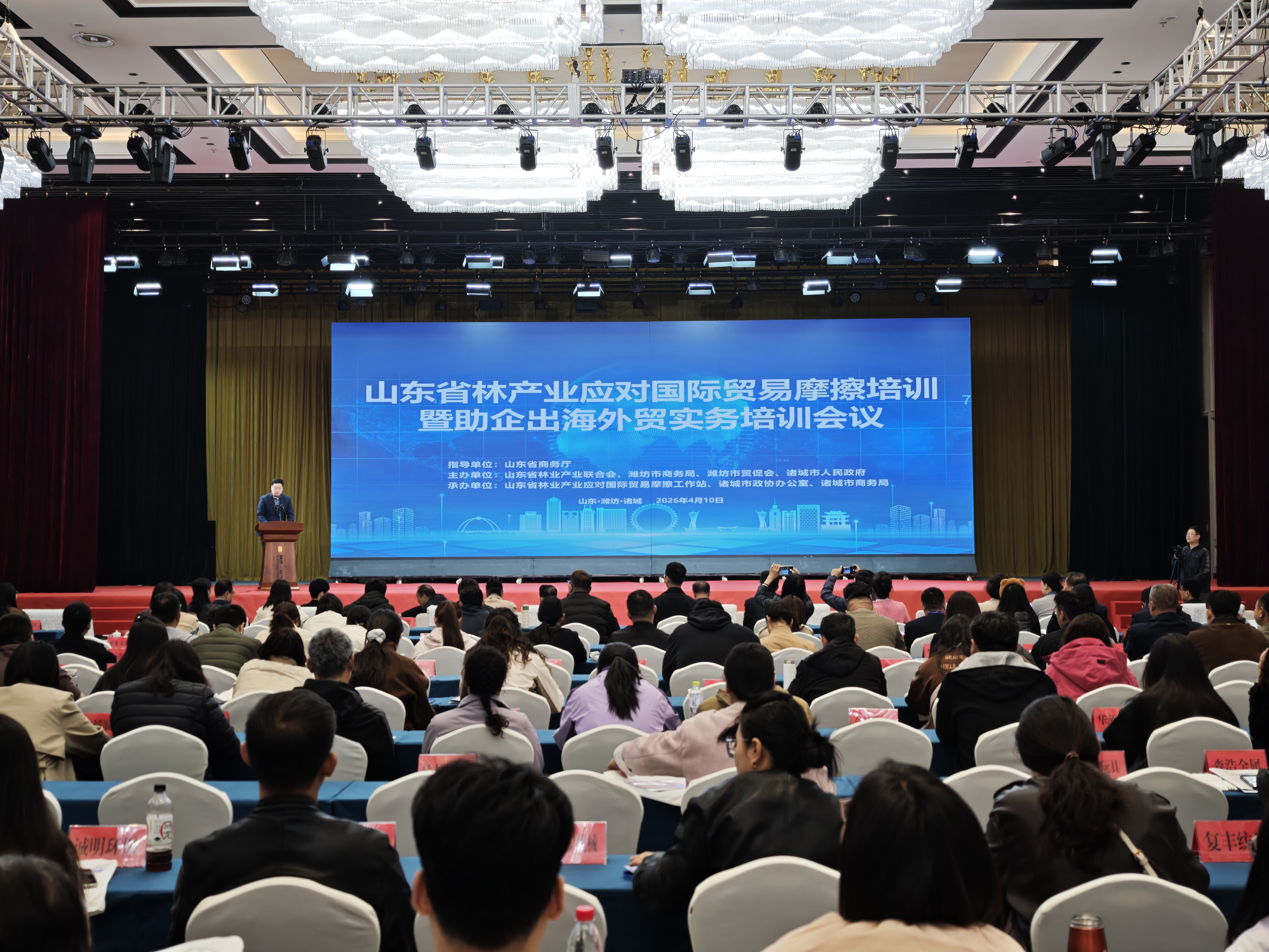 4月10日,山东省林产业应对国际贸易摩擦培训暨助企出海外贸实务培训会议在诸城市顺利举办。本次会议由山东省林业产业联合会、诸城市人民政府联合主办,山东省林产业应对国际贸易摩擦工作站、诸城市商务局承办,山东省商务厅悉心指导,全省各地300余名林产业企业代表、行业同仁参会。