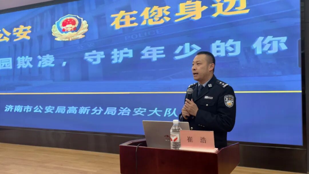 校园安全是教育工作的底线,法治教育是学生成长的基石。为进一步加强校园安全管理,增强学生法治观念与自我保护意识,有效预防和遏制校园欺凌事件发生,4月2日,济南高新区正丰中学特邀济南市公安局高新分局治安大队崔浩警官走进校园,为全体学生带来一场以“拒绝校园欺凌,守护年少的你”为主题的法治安全教育专题讲座。