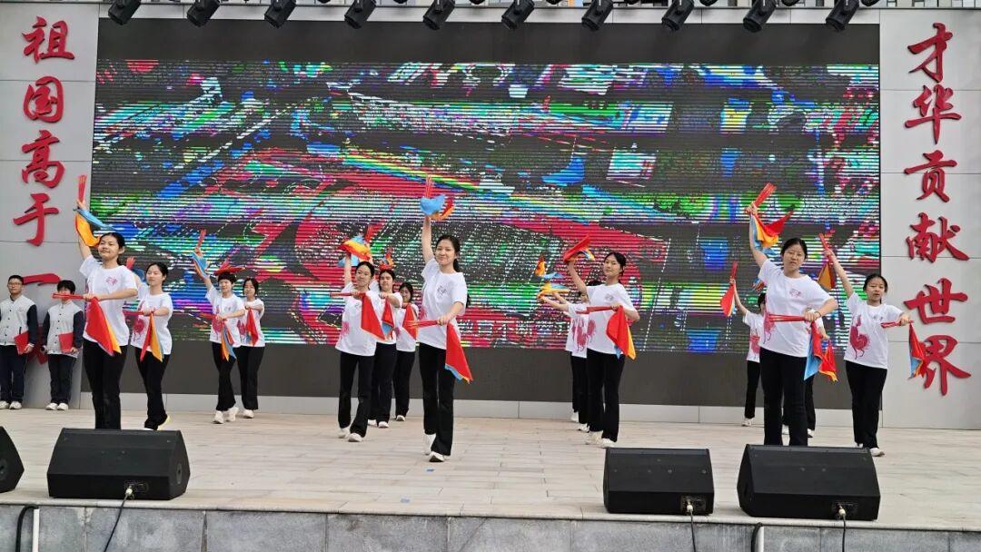 紧接着,荣获高新区一等奖的“三引导”之舞惊艳亮相。同学们身着我校自主刻版、手工印制的特色文化衫,以灵动舞姿生动诠释“三引导”行动的育人内涵。这件文化衫既是校园开放月特色活动成果,更是家校携手、以美育人的生动体现。