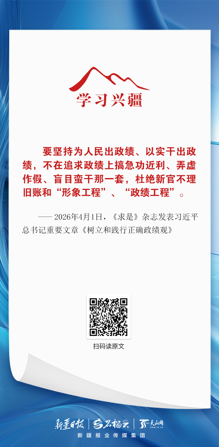 要坚持为人民出政绩、以实干出政绩,不在追求政绩上搞急功近利、弄虚作假、盲目蛮干那一套,杜绝新官不理旧账和“形象工程”、“政绩工程”。——2026年4月1日,《求是》杂志发表习近平总书记重要文章《树立和践行正确政绩观》