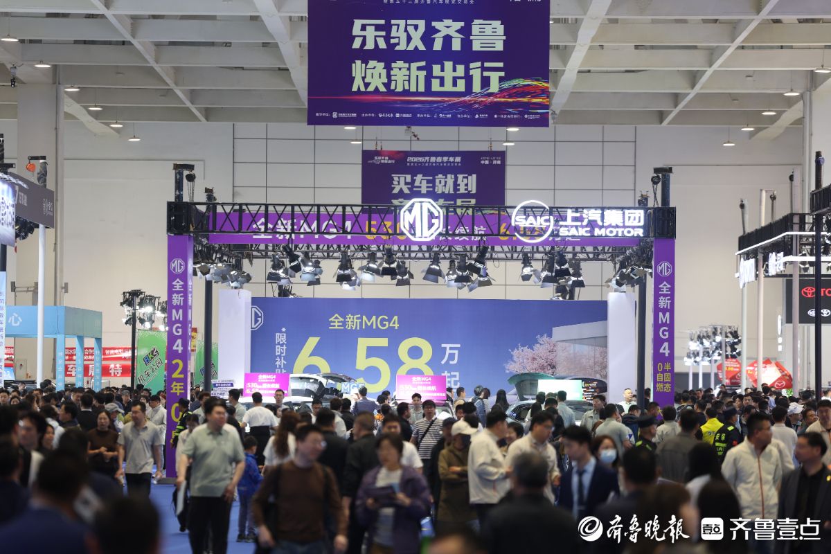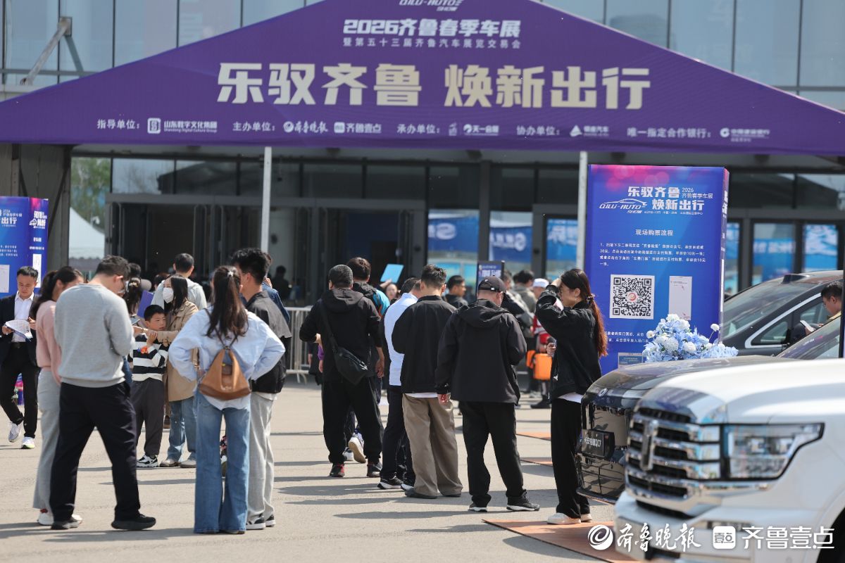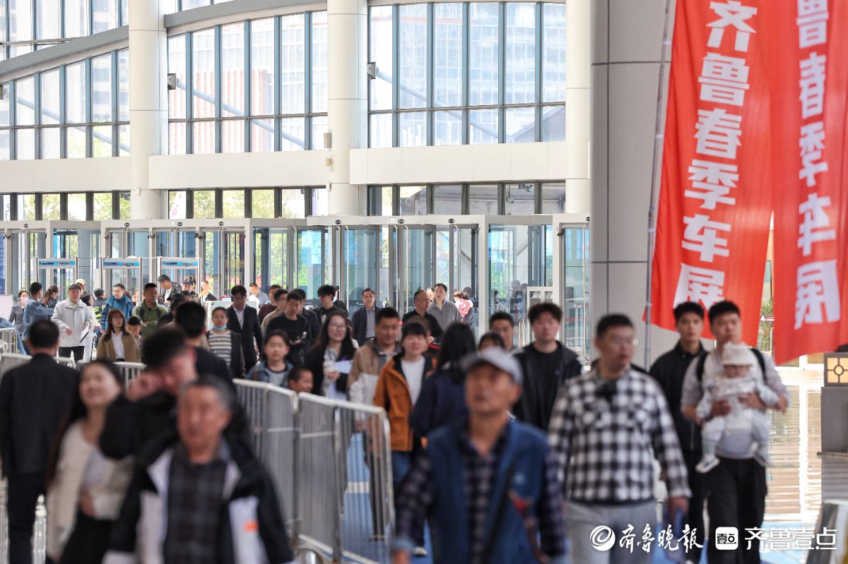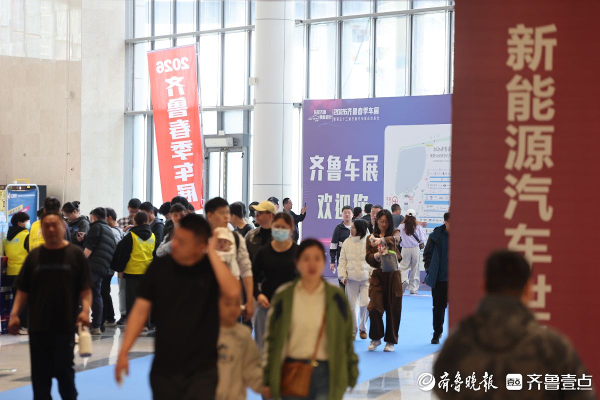 4月11日,正值周末,2026齐鲁春季车展迎来客流小高峰。山东国际会展中心内人头攒动,不少市民从四面八方赶来,看车、选车、购车热情高涨,气氛十分火爆。齐鲁晚报·齐鲁壹点王鑫