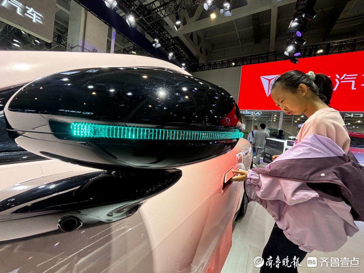 4月11日,2026齐鲁春季车展现场,不少国产新能源车展车亮起醒目的蓝色指示灯。这一设计直观提示车辆具备智能驾驶辅助功能,方便消费者快速识别,成为吸引观展者驻足的亮眼元素。齐鲁晚报·齐鲁壹点王鑫