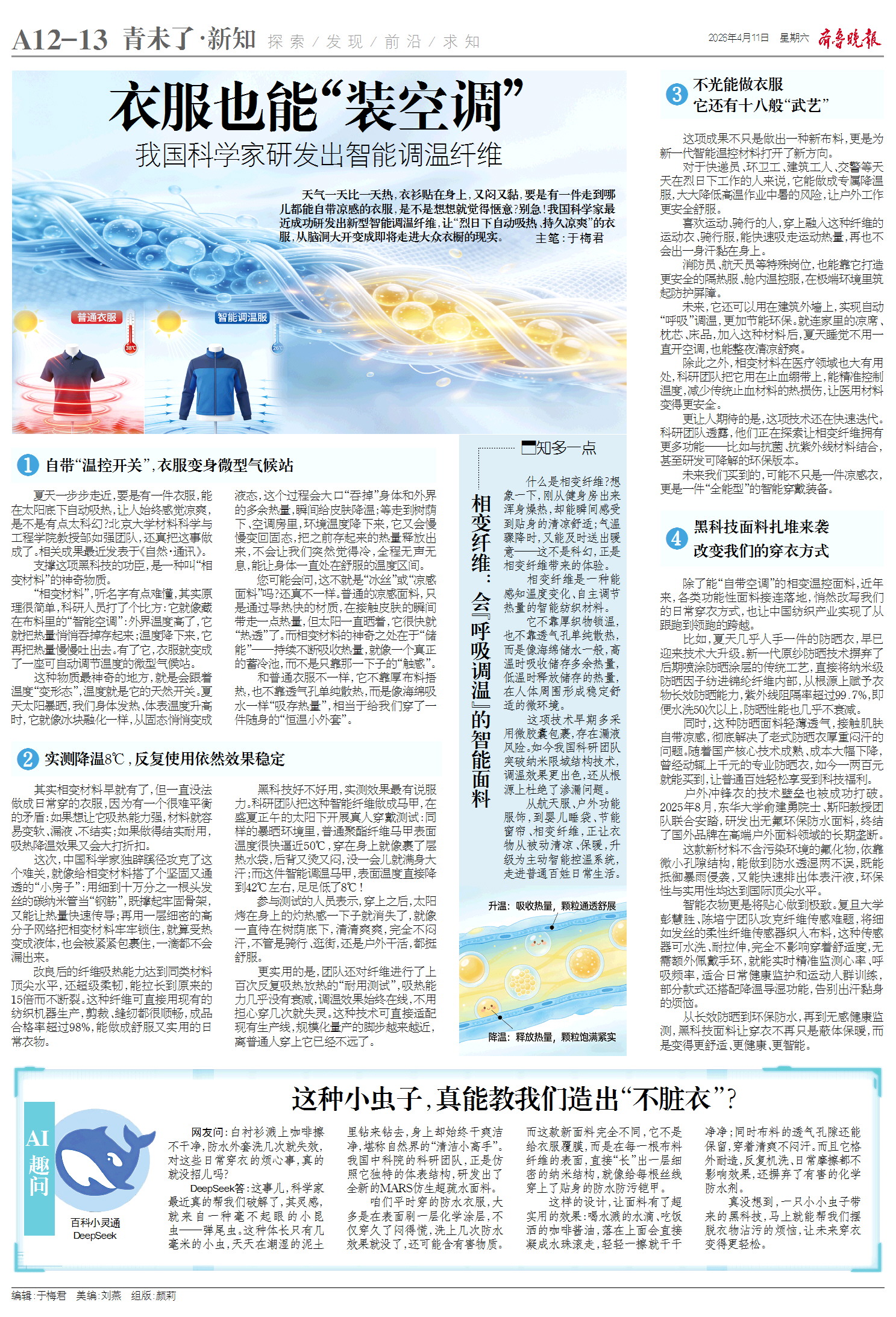 更让人期待的是,这项技术还在快速迭代。科研团队透露,他们正在探索让相变纤维拥有更多功能——比如与抗菌、抗紫外线材料结合,甚至研发可降解的环保版本。未来我们买到的,可能不只是一件凉感衣,而是一件“全能型”的智能穿戴装备。