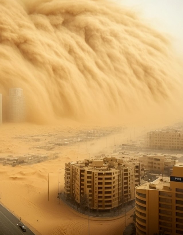 3月31日,撒哈拉干热风突袭利比亚东北部,10—11级强风卷起跨度超1600公里的巨型沙尘云,托布鲁克、班加西等城市白昼如黄昏,天空橙红如血,交通中断、航班取消,呼吸道疾病患者明显增多。