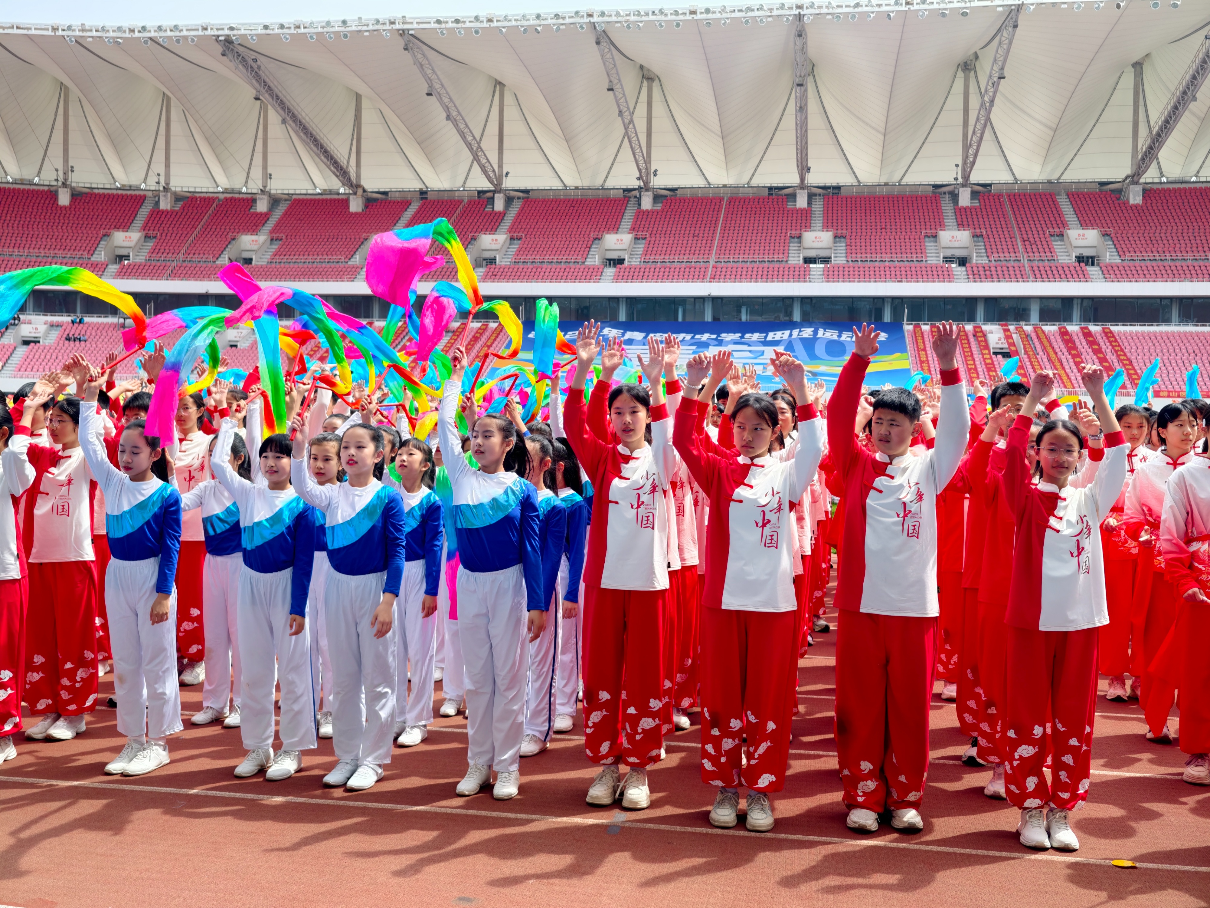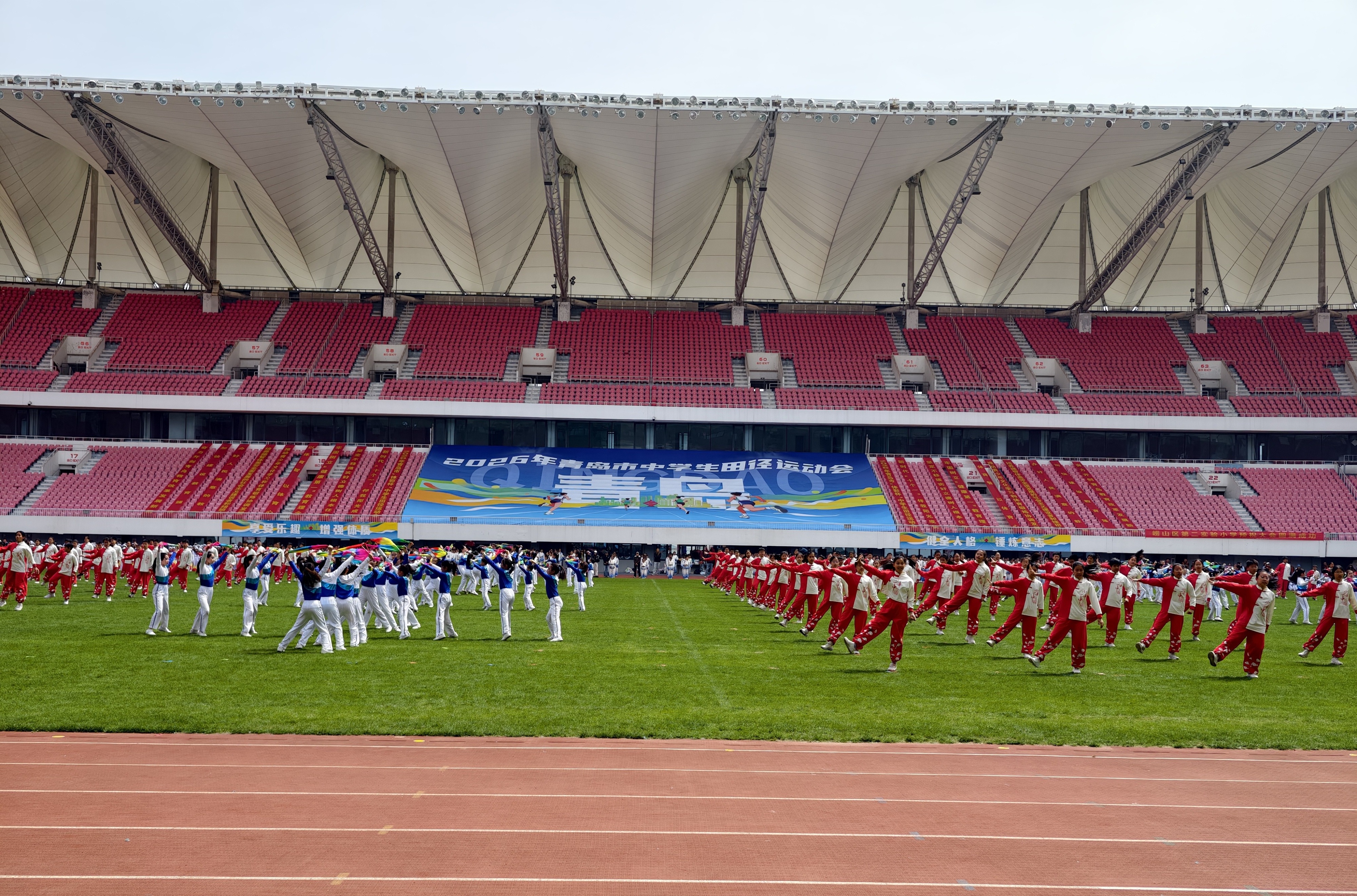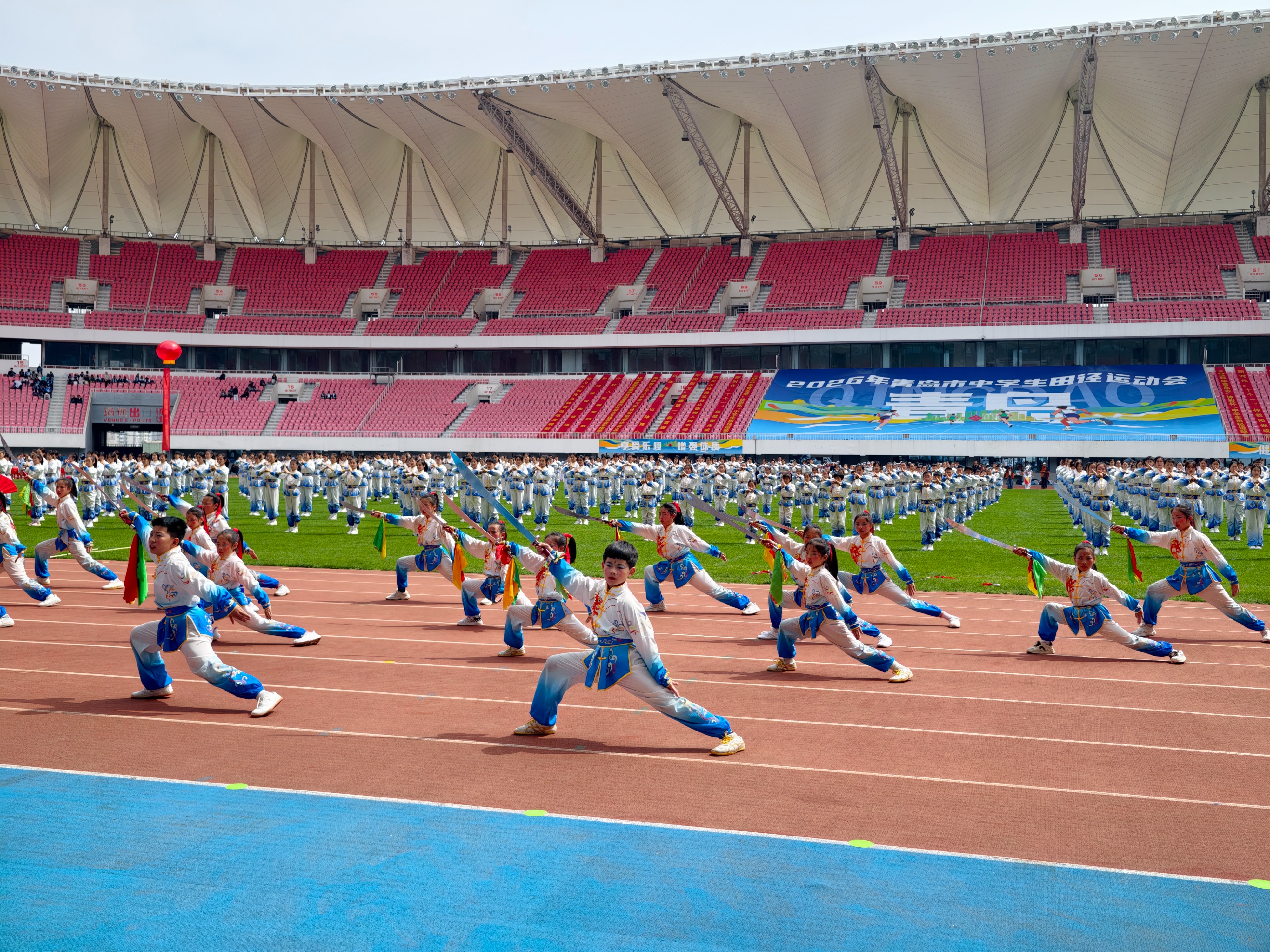 4月11日上午,2026年青岛市“体彩杯”中学生田径运动会在青岛体育中心国信体育场活力开幕,开幕式以“新时代‘十个一’伴我阳光成长”为主题,来自全市27所学校的2500余名学生进行大型文体项目展演。