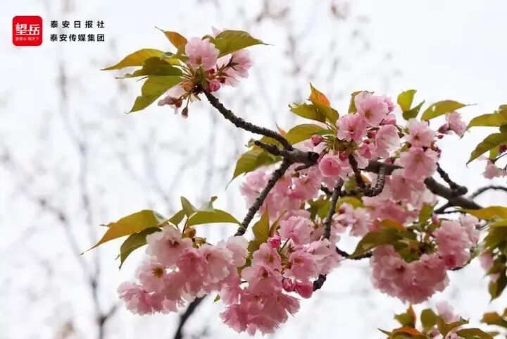 泰城四月,风是信使,花为请柬。这几日,泰安擂鼓石大街迎来了一年中最富活力与诗意的时刻。不同于连翘的奔放与丁香的幽邃,千余株晚樱在道路两侧悄然盛放,红白相间的花瓣薄如蝉翼,在微风中簌簌摇曳,仿佛为这座城市披上了一层流动的轻纱。这里,正解锁着今春泰城最时尚、最治愈的“城市表情”。