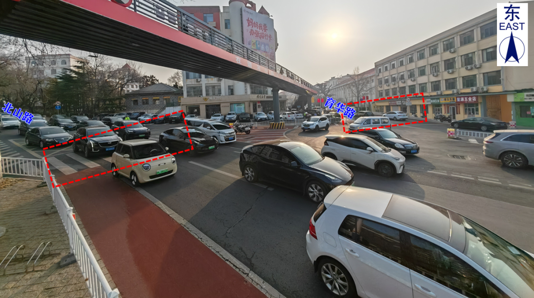(一)交通流量集中。受区域路网影响,海滨路实验中学路口同时承载着实验中学“送学流”与戚谷疃、戚东夼、远遥等片区居民“通勤流”,早晚高峰时段流量集中、压力较大。