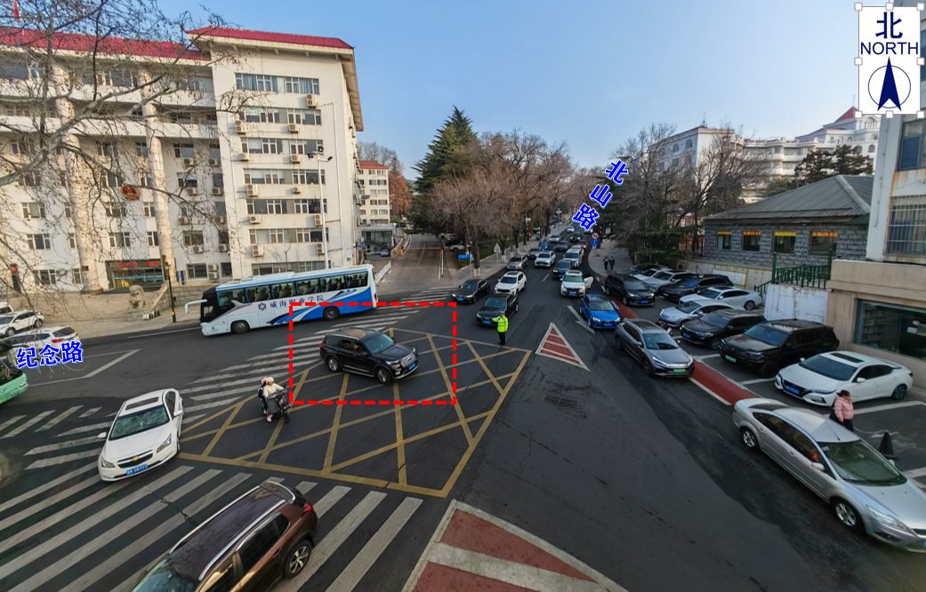 1.纪念路—北山路西口直行去往育华路的车流干扰(流量约87辆/小时)。