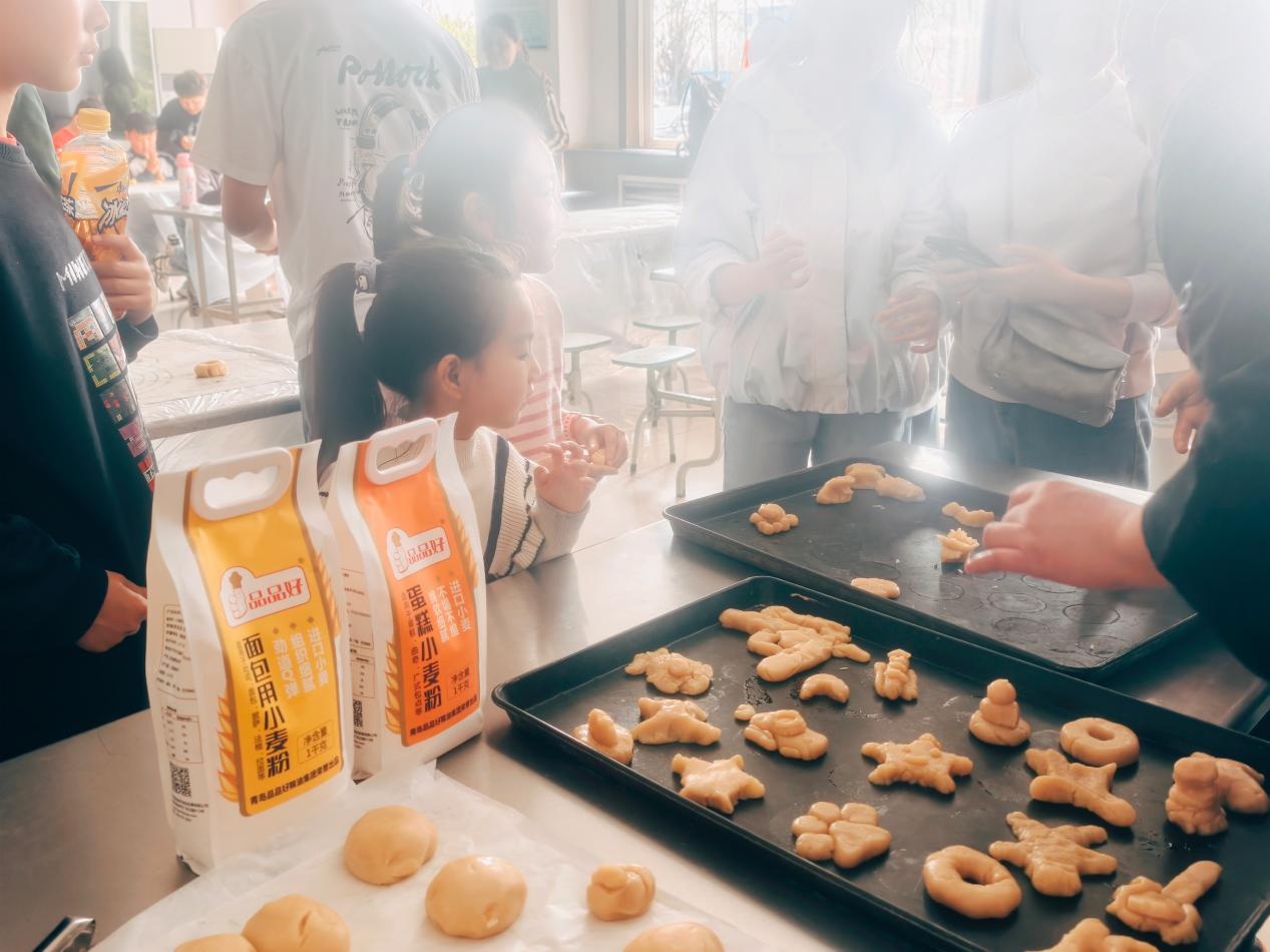 颁奖仪式后,一场趣味十足的工厂研学实践正式开启。在工作人员带领下,孩子们参观面粉仓储库、粮食检验实验室,近距离了解粮油生产与品质检测流程;在小麦磨粉体验区,大家亲手将麦粒磨成面粉,直观感受“一粒粮到一袋粉”的奇妙变化。最受欢迎的手工DIY桃酥环节,孩子们在烘焙师指导下揉面、塑形,创意满满、乐趣无穷,亲手制作的点心还能带回家与家人分享。