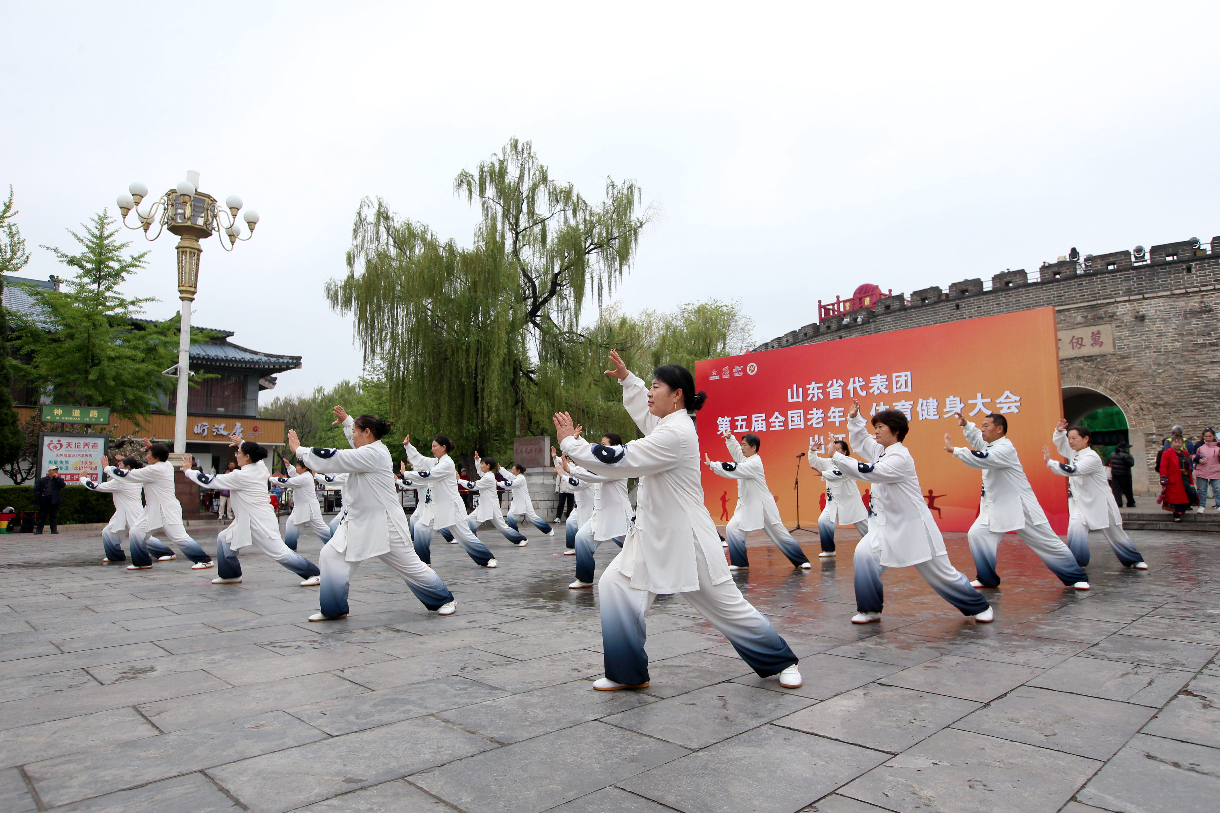 除理论学习,培训班还安排沉浸式现场教学与实践实训,实现学用结合、以练促学。4月9日上午,全体学员前往曲阜市万仞宫墙,参与报道明故城开城仪式和山东省参加第五届全国老健会出征授旗仪式。