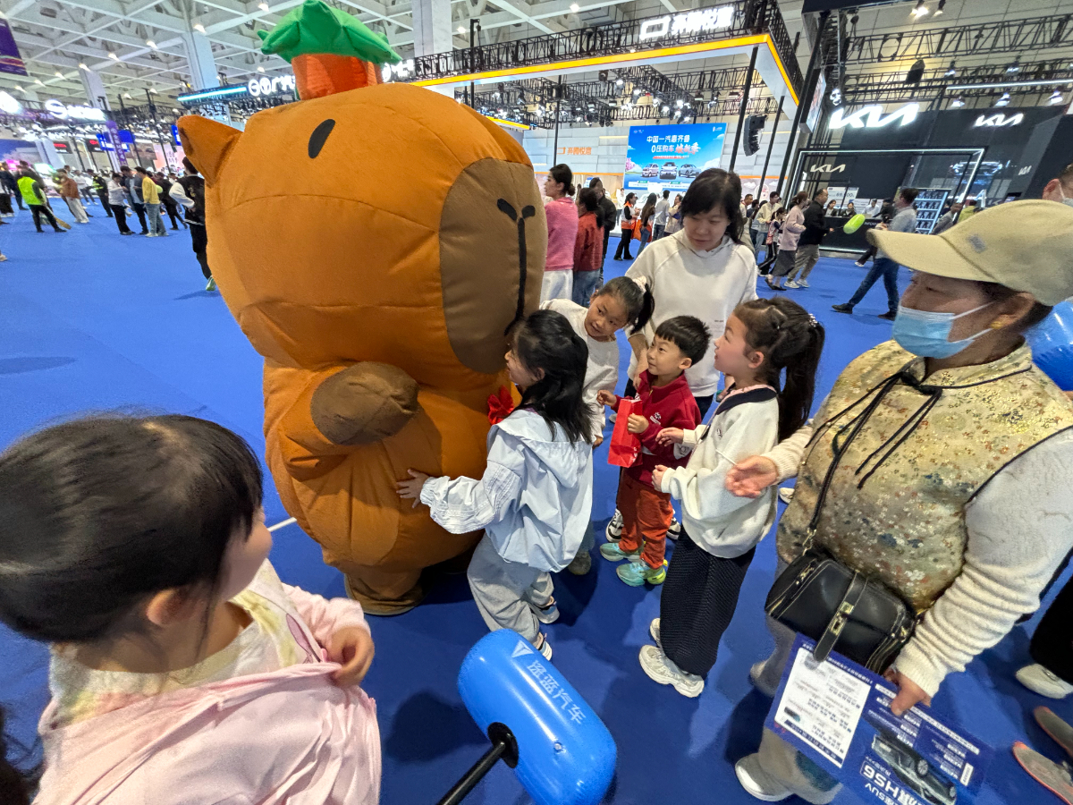 4月11日,2026齐鲁春季车展周末人气持续升温。现场参展商各出奇招吸引消费者,棉花糖、糖画、卡皮巴拉人偶、小丑表演等亲子互动项目扎堆亮相,小朋友们玩得不亦乐乎,家长们得以安心看车选车,真正实现"带娃购车两不误"。齐鲁晚报·齐鲁壹点记者王鑫
