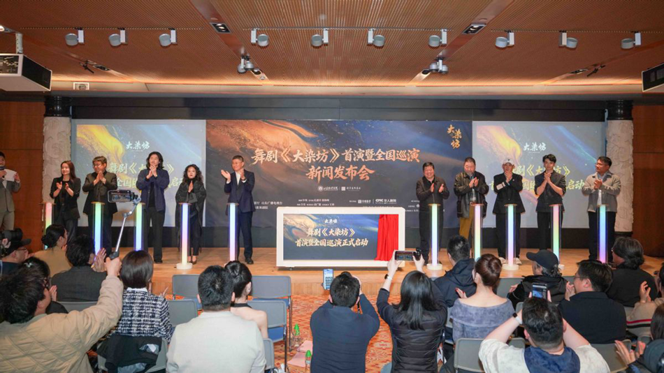 Participants at the press conference unveil the dance drama Dye House in Beijing on Thursday. [Photo provided to chinadaily.com.cn]