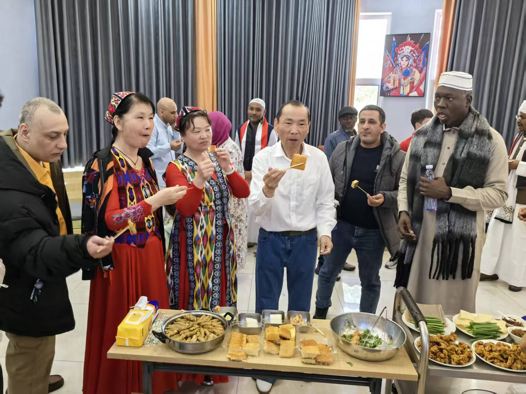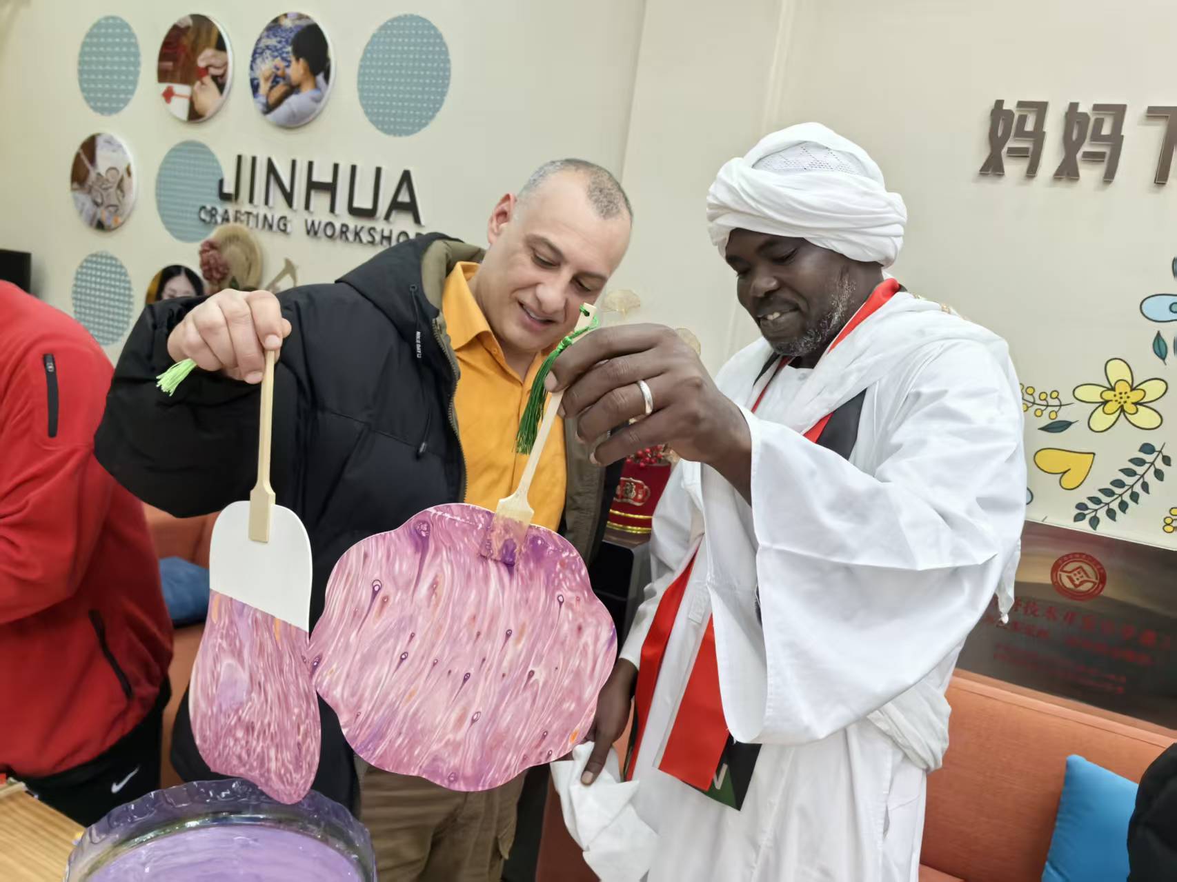 传统美食品鉴区香气四溢、人气十足,埃及、苏丹特色美食与东营本地菜肴同台亮相,中外友人互品佳肴,在味蕾的碰撞中拉近心与心的距离。漆扇制作环节,非洲友人亲身感受了漆水与扇面相互交融、层层成韵的制作之美。在体验了拔火罐、推拿等中医传统理疗项目后,非洲友人感到新奇又舒适,纷纷感叹中华传统医学的博大精深与实用价值。