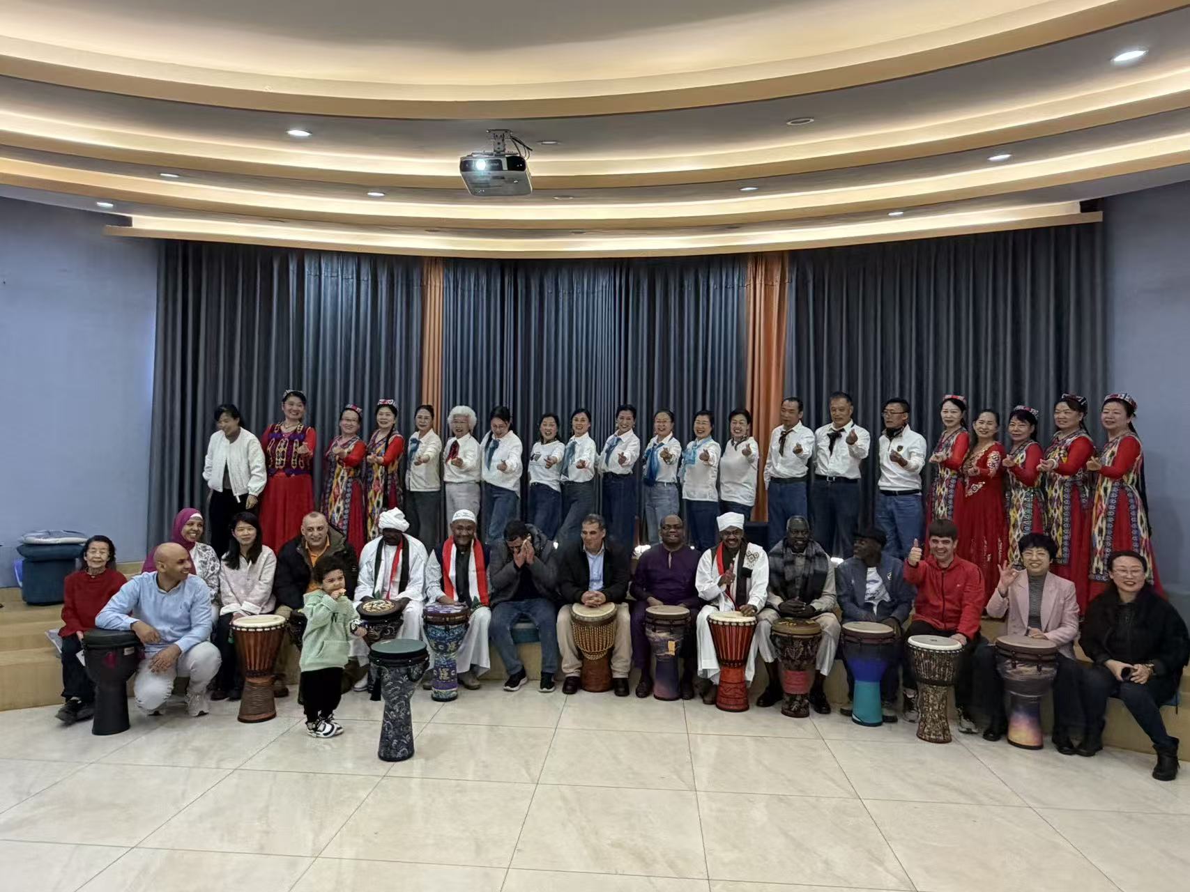 上午,中非文化交流活动在胜利街道锦华社区开幕。市外办党组成员、副主任、市人民对外友好协会常务副会长徐燕,非洲籍友人代表法里德、锦华社区党委书记助理聂稳稳先后致辞,共话中非友谊。非洲友人与社区居民欢聚一堂,活动现场暖意融融,掌声、欢笑声此起彼伏,加纳友人深情献唱中文歌曲《相信梦想》,苏丹、南苏丹、埃及、尼日利亚友人身着民族服饰,载歌载舞展非洲风情;揽辰鼓韵艺术团带来激昂非洲鼓表演,锦华麦舞团献上灵动新疆舞,互动环节把气氛推向高潮,多元文化碰撞交融、精彩纷呈,让现场观众沉浸式感受中外文明的独特魅力。