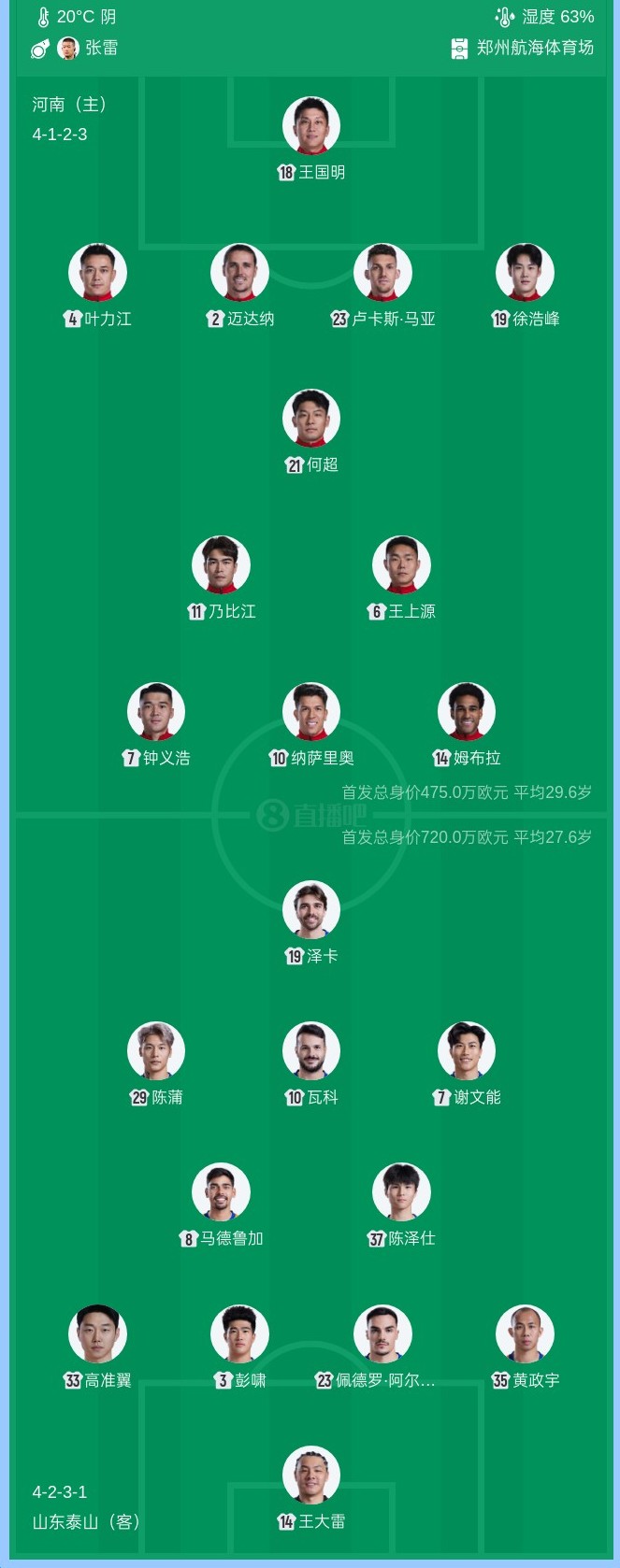 中超|鲁豫之战首发阵容出炉,韩鹏变阵,两名U21小将首发