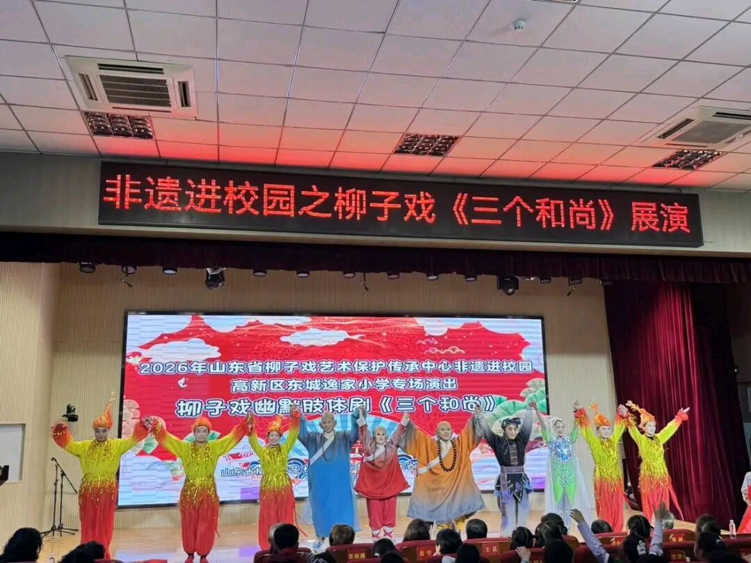 为弘扬中华优秀传统文化,让孩子们近距离感受非物质文化遗产的独特魅力,丰富校园文化生活,搭建家校共育的温馨桥梁,近日,济南高新区东城逸家小学特邀山东省柳子戏艺术保护传承中心的艺术家们走进校园,为部分学生与学生的爷爷奶奶献上经典柳子戏幽默肢体剧《三个和尚》。整场演出寓教于乐、雅俗共赏,让传统戏曲在校园里绽放光彩,也让祖孙同堂共享文化盛宴。
