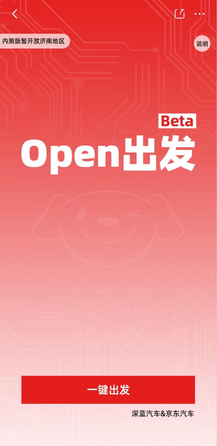 经过记者实测,在京东App搜索“Open出发”,会出现“Open 出发服务”页面,界面与主流打车软件相似。该页面功能均未开放,显示内测版暂开放济南地区,将于4月13日上线内测功能。