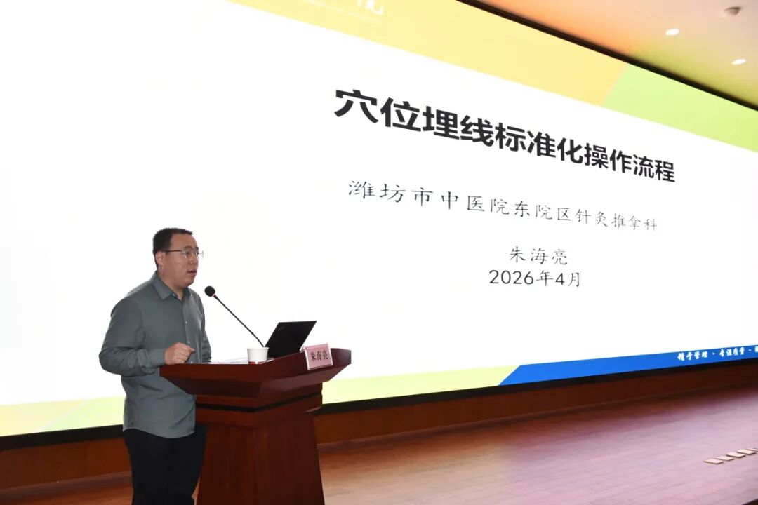 潍坊市中医院东院区针灸推拿科副主任医师朱海亮以《穴位埋线标准化操作流程》为题作学术报告