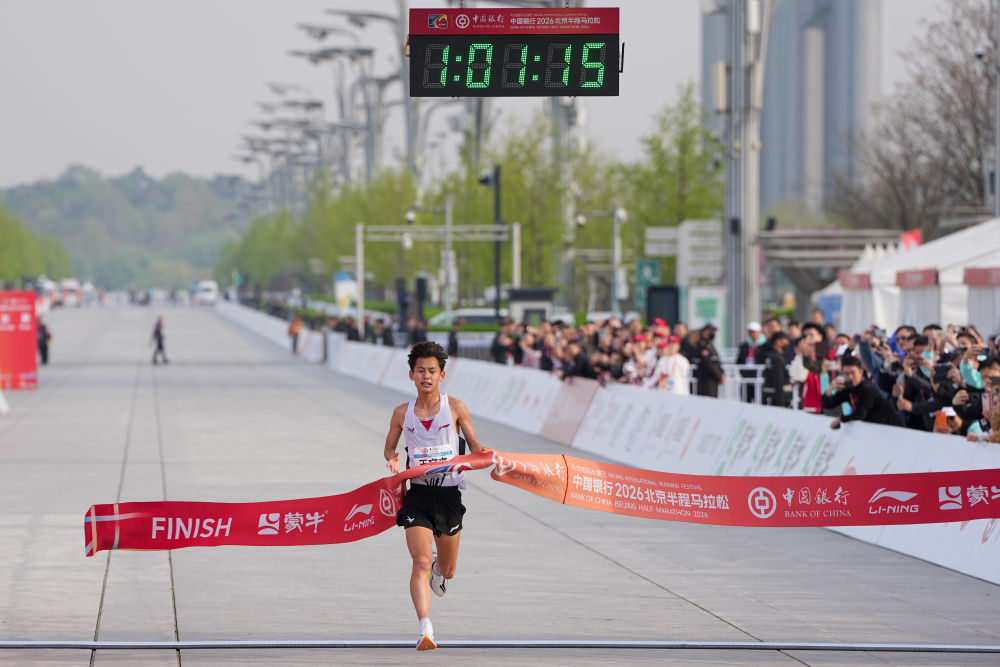 在12日进行的北京半程马拉松赛上,中国选手王文杰以1小时1分15秒的枪声成绩刷新了国内男子半马最好成绩。此前的国内男子半马最好成绩是于水庆在2025年2月创造的1小时1分46秒。(新华社)