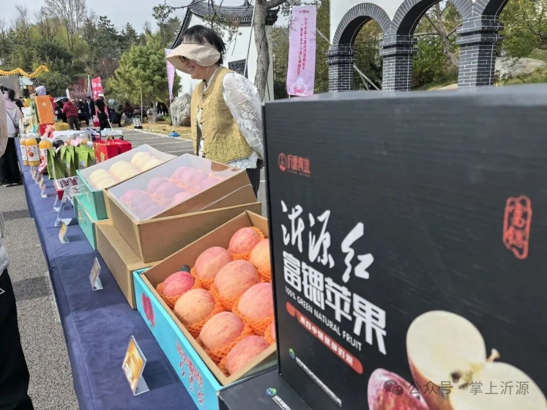 桃花开,不是只能看。在桃花岛景区,“沂源好物”展销区集中展示了沂源红苹果、大樱桃、桃木工艺品等特产。仅开幕式当天,农特产品现场销售额即突破10万元。
