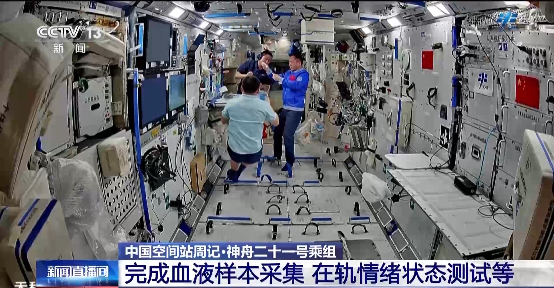 上周,根据骨代谢交互调控、空间节律与睡眠等实验计划安排,乘组完成了血液样本的采集,借助离心机进行处理,并妥善保存等待下行。此外,航天员使用笔记本电脑及相关实验软件,完成了元认知监控研究、应急决策能力评估、在轨情绪状态测试等多个项目的测试工作。