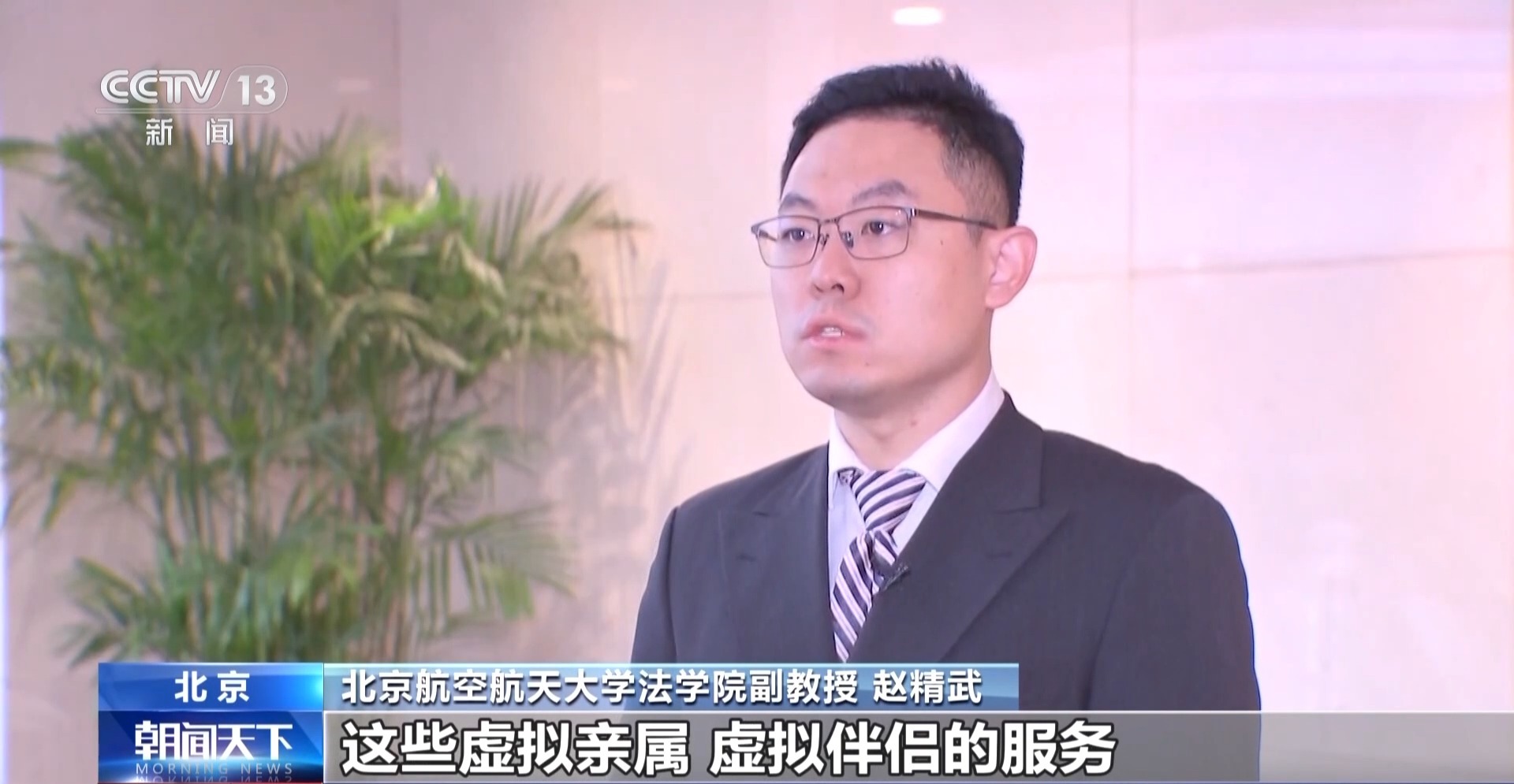 北京航空航天大学法学院副教授 赵精武:禁止向未成年人提供虚拟亲属、虚拟伴侣的服务,主要考虑的是未成年人正处于三观形成和培育阶段,虚拟亲密关系服务容易误导未成年人对现实生活当中的亲属和伴侣关系产生一些错误的认识。还需要结合未成年人的年龄段,设置针对不同特定年龄段层次化的未成年人的保护措施和内容,一旦未成年人在使用过程中出现极端性情绪,应当提供相应的援助这些必要的措施,并及时联络用户的监护人或者紧急联系人。