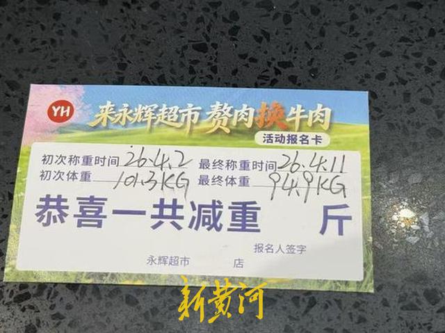 此前,新黄河报道过济南一超市推出的“赘肉换牛肉”活动,“减重三斤可换一斤牛肉”。
