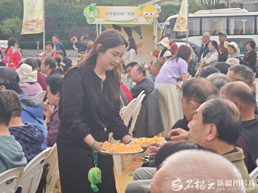山东省文化馆广场,观众品尝哈密瓜。天山网-新疆日报记者 宋海波摄
