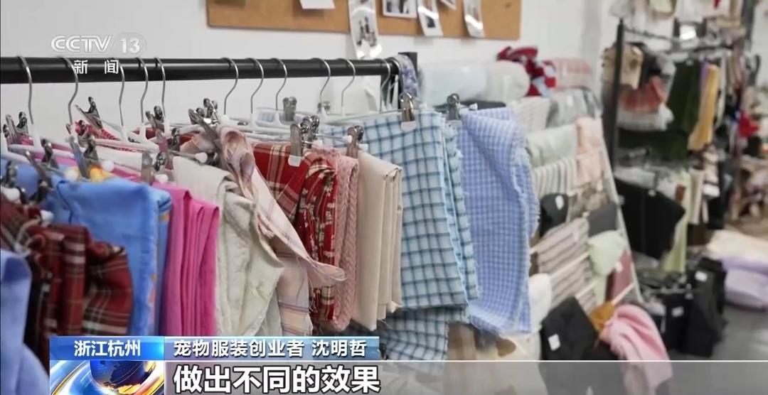 宠物服装创业者 沈明哲:大部分的客人都想要不同的款式,做出不同的效果。面料有棉的、麻的、有弹力的,还有偏向于精品一点的面料。