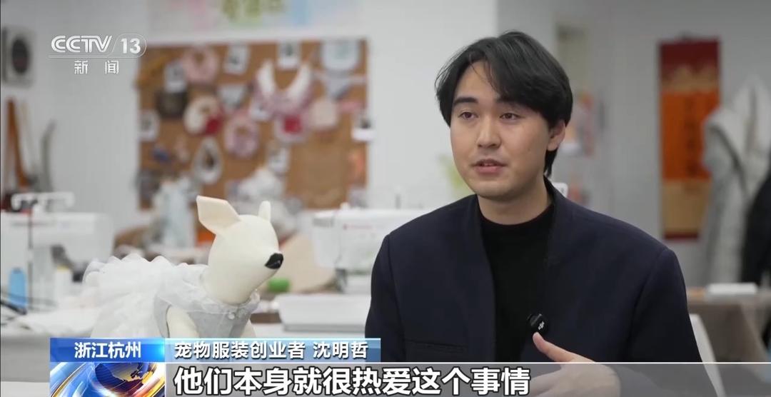 聊起宠物衣服面料,沈明哲说得头头是道。大学在杭州就读的他,深受周边浓厚创业氛围影响,看到手工制作在年轻人中风靡,毕业后开了一间缝纫教室。