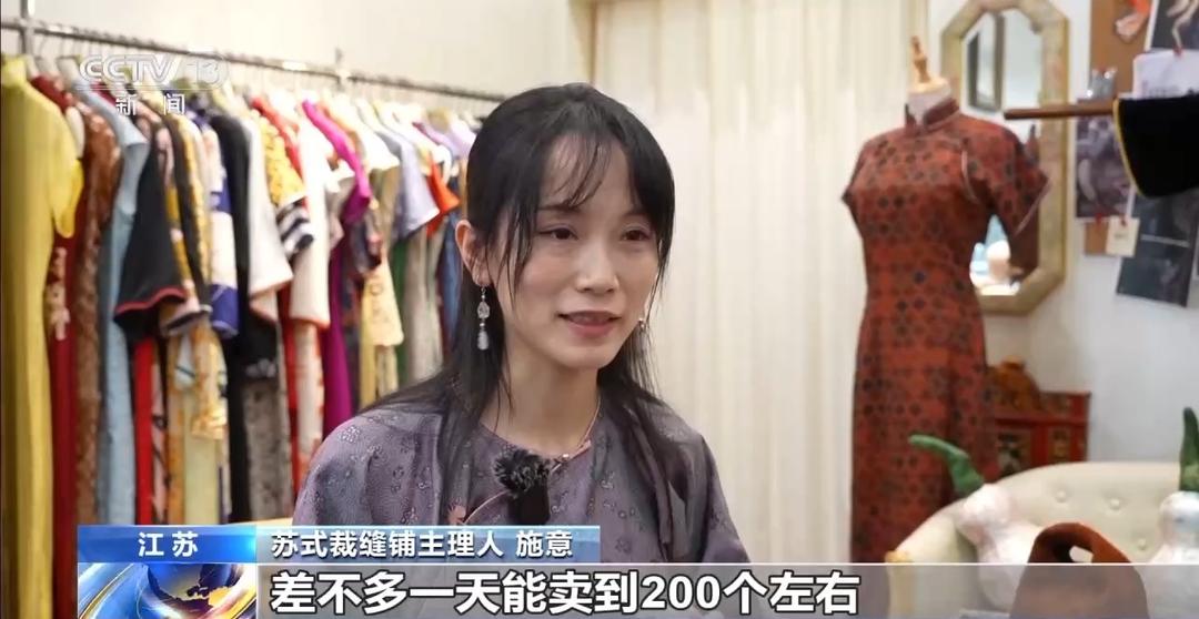 苏式裁缝铺主理人 施意:差不多一天能卖200个左右。市场反响超出预期,每天打开工作群是线上的订单要发货。