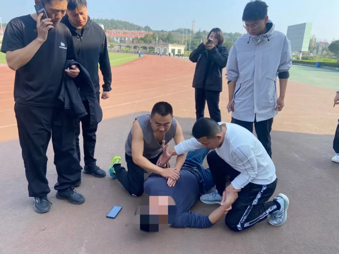 4月2日早晨,正在老体育馆组织晨训的邹城市公安局特巡警大队,遇到一名约50岁的男子突然倒地。情况危急,带队民警果断下令:中止训练,全员转战救援!