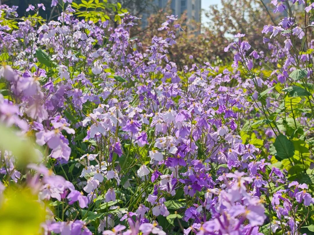 人间四月,春风拂过新区,成片二月兰悄然绽放,层层叠叠铺满坡地林间。不与繁花争艳,却自成一片温柔花海,微风掠过,紫浪轻摇,清新又治愈。四月里,来这里邂逅这片紫色浪漫,邂逅春日限定的诗意与美好。
