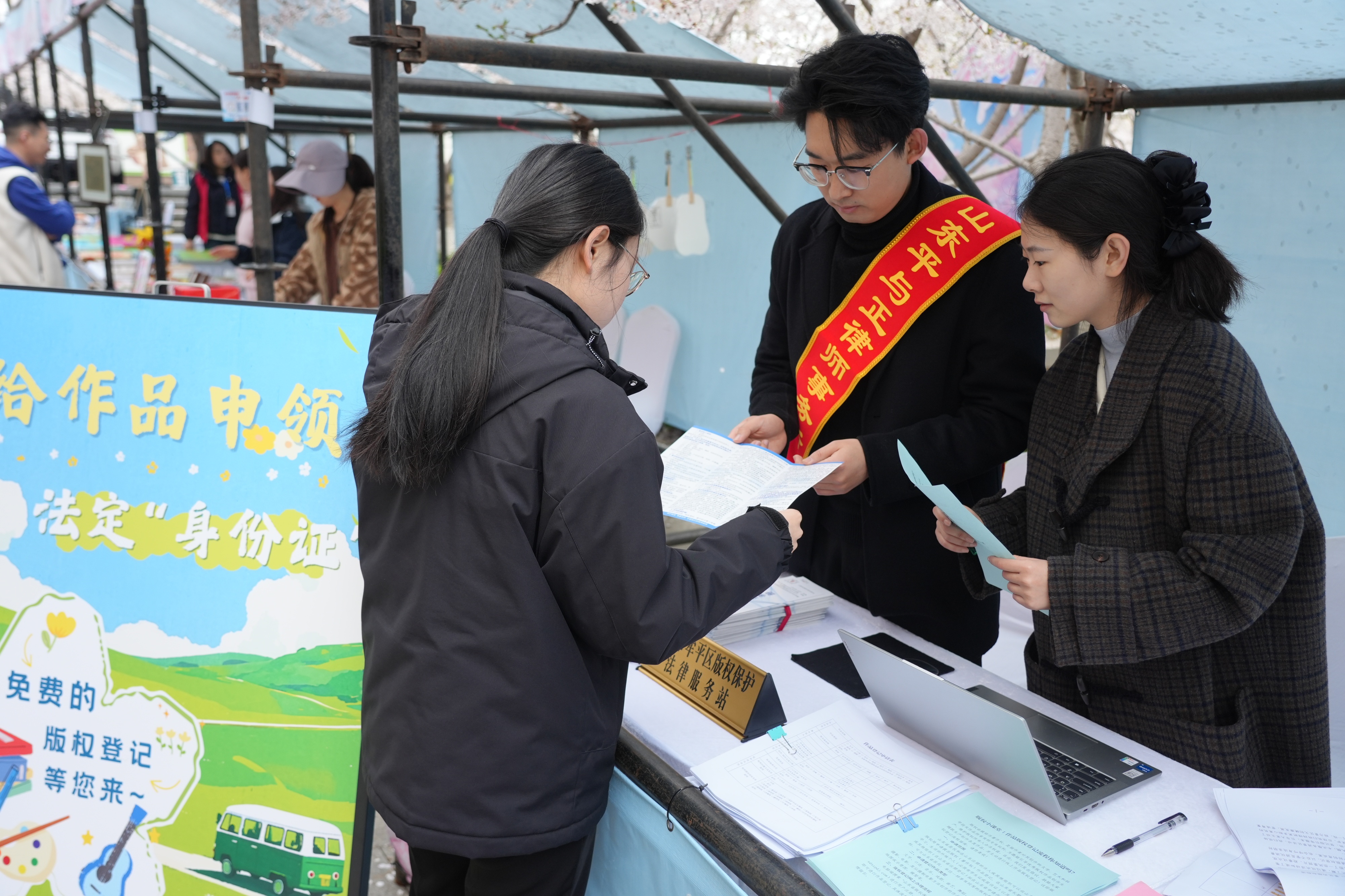 书香伴樱开 版权护创新!牟平区开展版权服务进景区活动