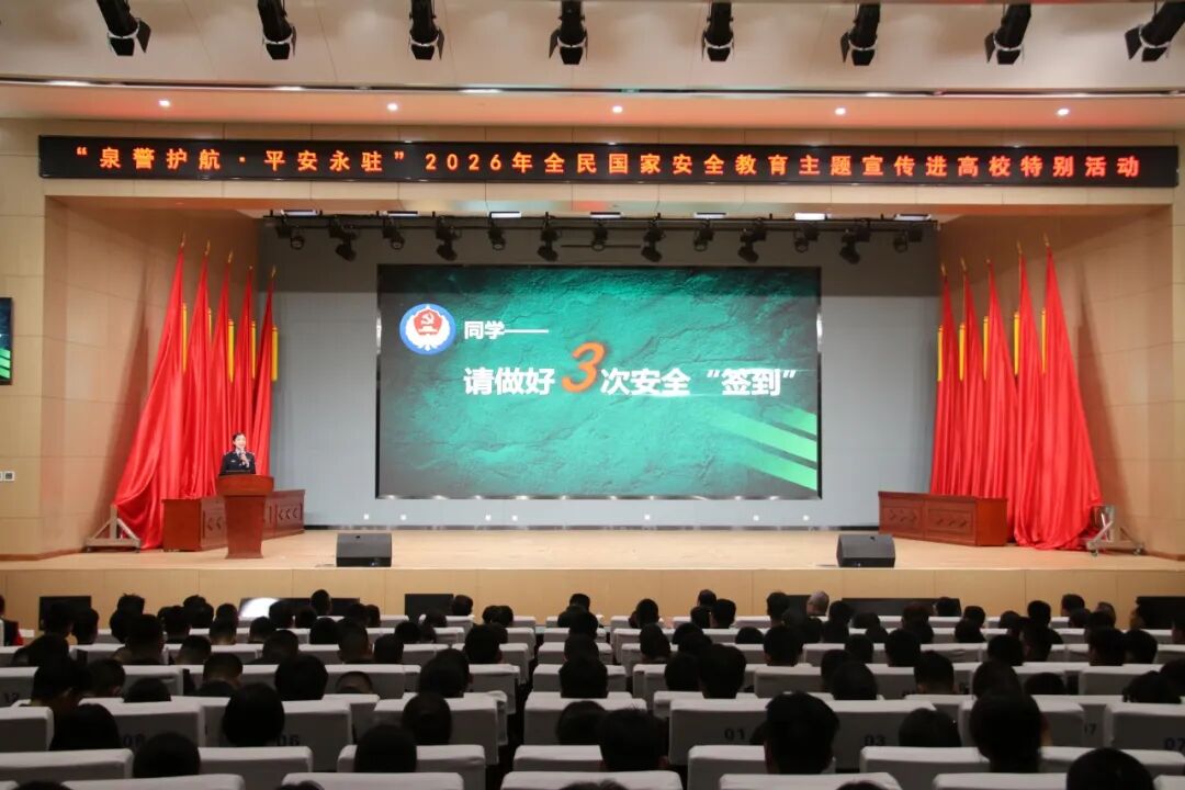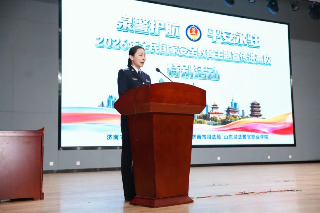 4月10日,由济南市国家安全局、济南市公安局、济南市司法局联合主办的“泉警护航·平安永驻”2026年全民国家安全教育主题宣传进高校特别活动在山东司法警官职业学院举办。