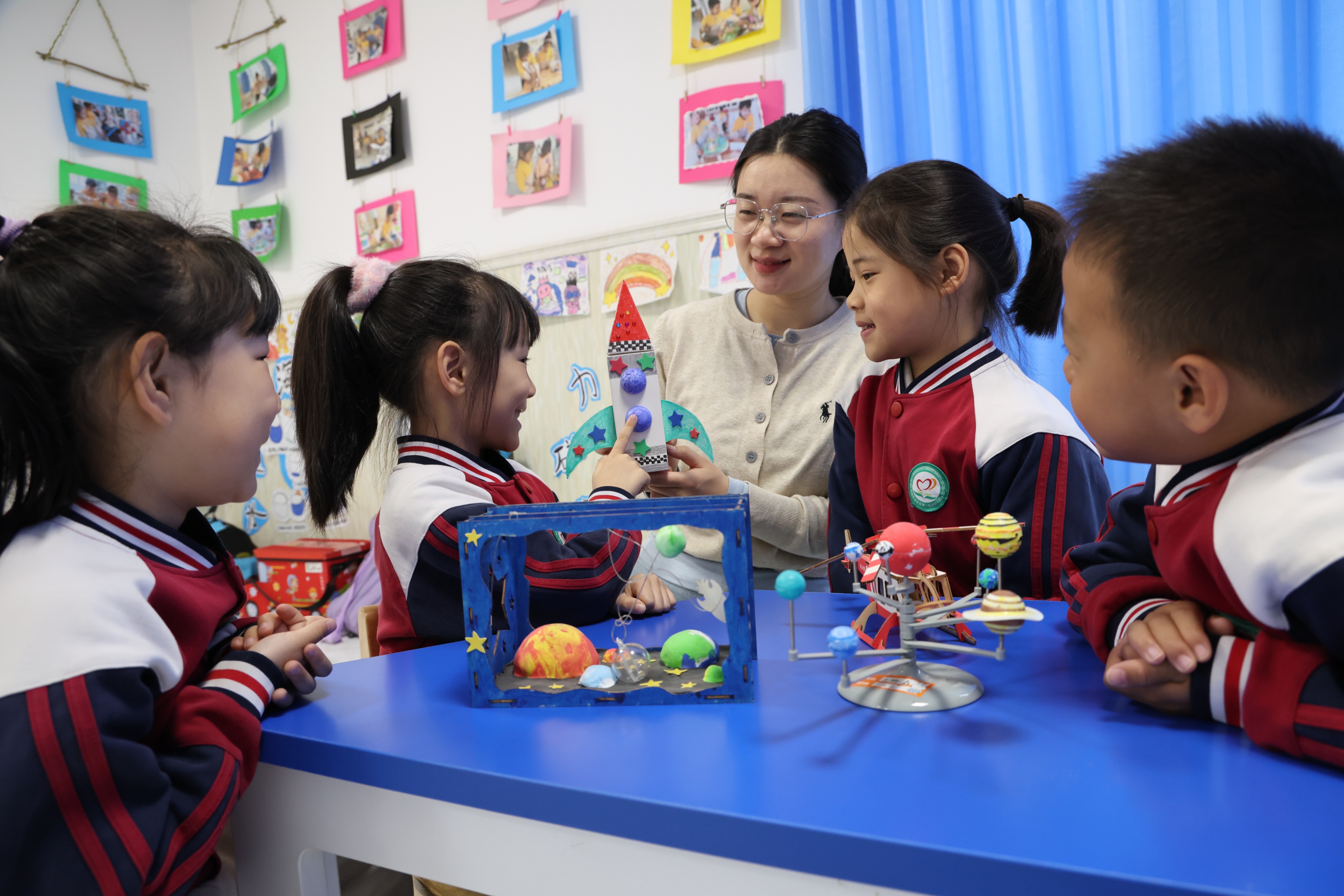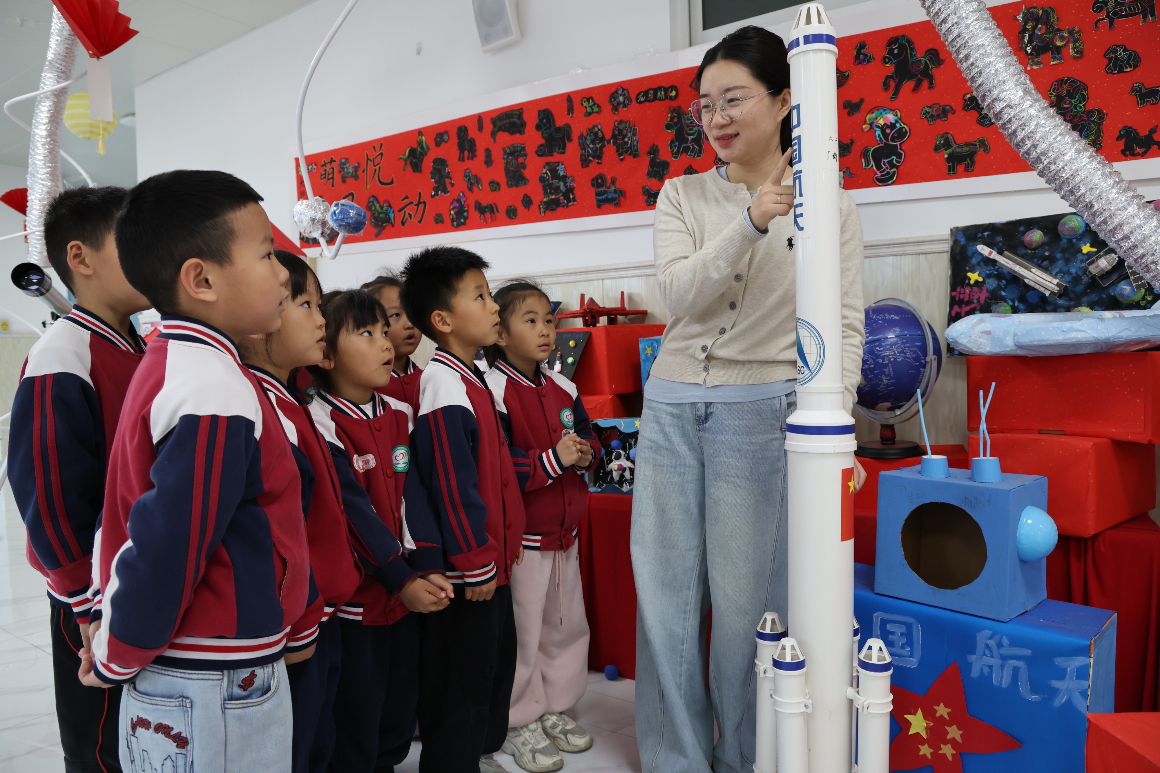 近日,滨州市沾化区第三实验幼儿园开展“逐梦航天点亮童心”世界航天日主题活动,迎接世界航天日,激发幼儿对航天科学的探索兴趣。活动中,老师向孩子们介绍了世界航天日的由来,教孩子们认识了火箭、飞船、卫星、空间站等航天设备,通过创意手工、火箭发射实验等形式,带领孩子们沉浸式探索宇宙奥秘,感受航天科技的神奇魅力。(大众新闻记者 程芃芃 通讯员 卞俊涵)
