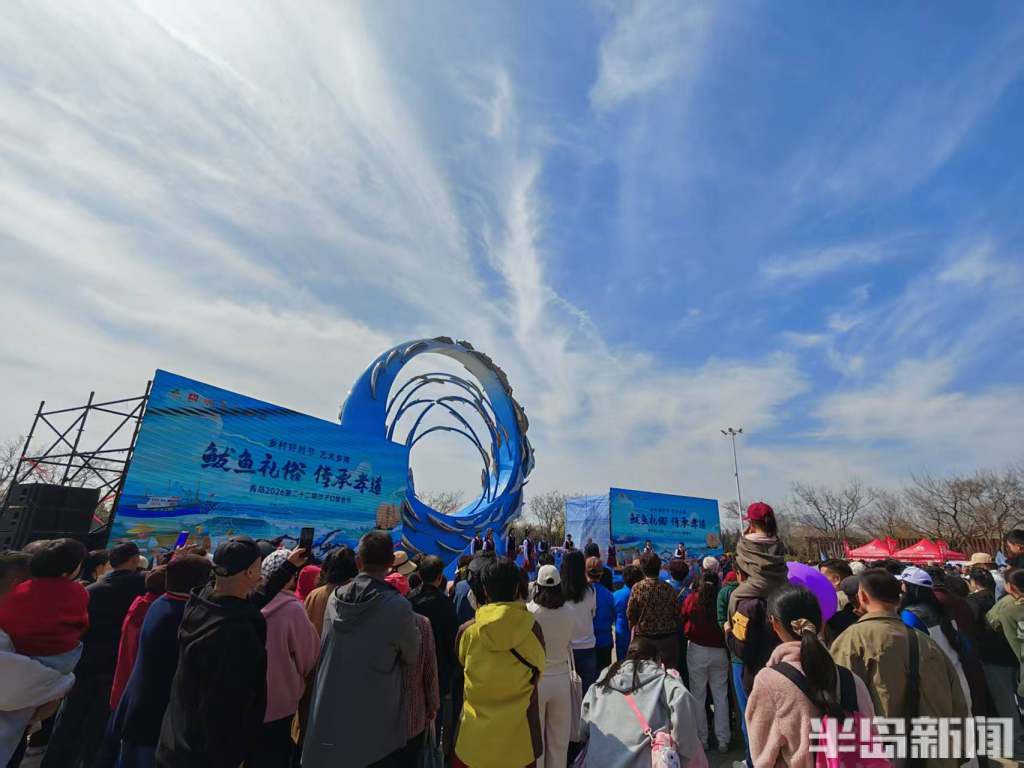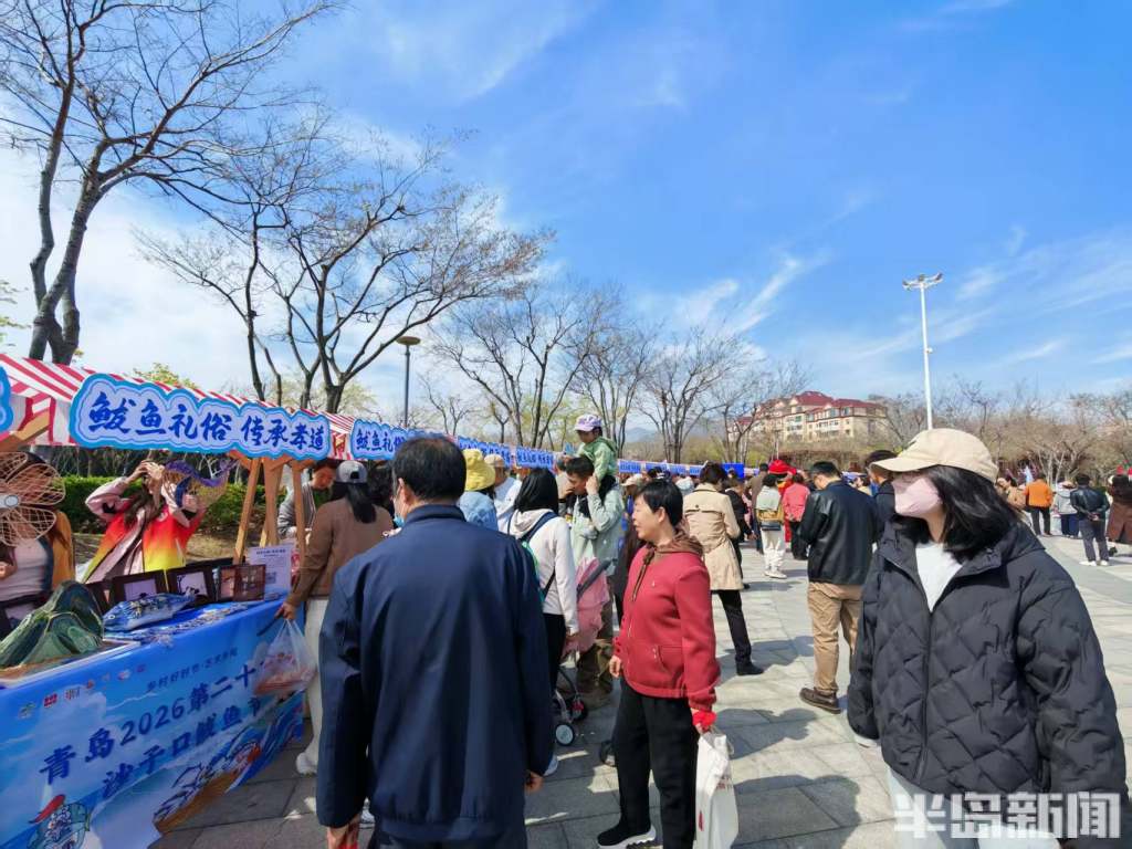 4月12日上午8点半,离2026沙子口鲅鱼节开幕还有半个小时的时间,但沙子口街道休闲广场上已经满满都是人。