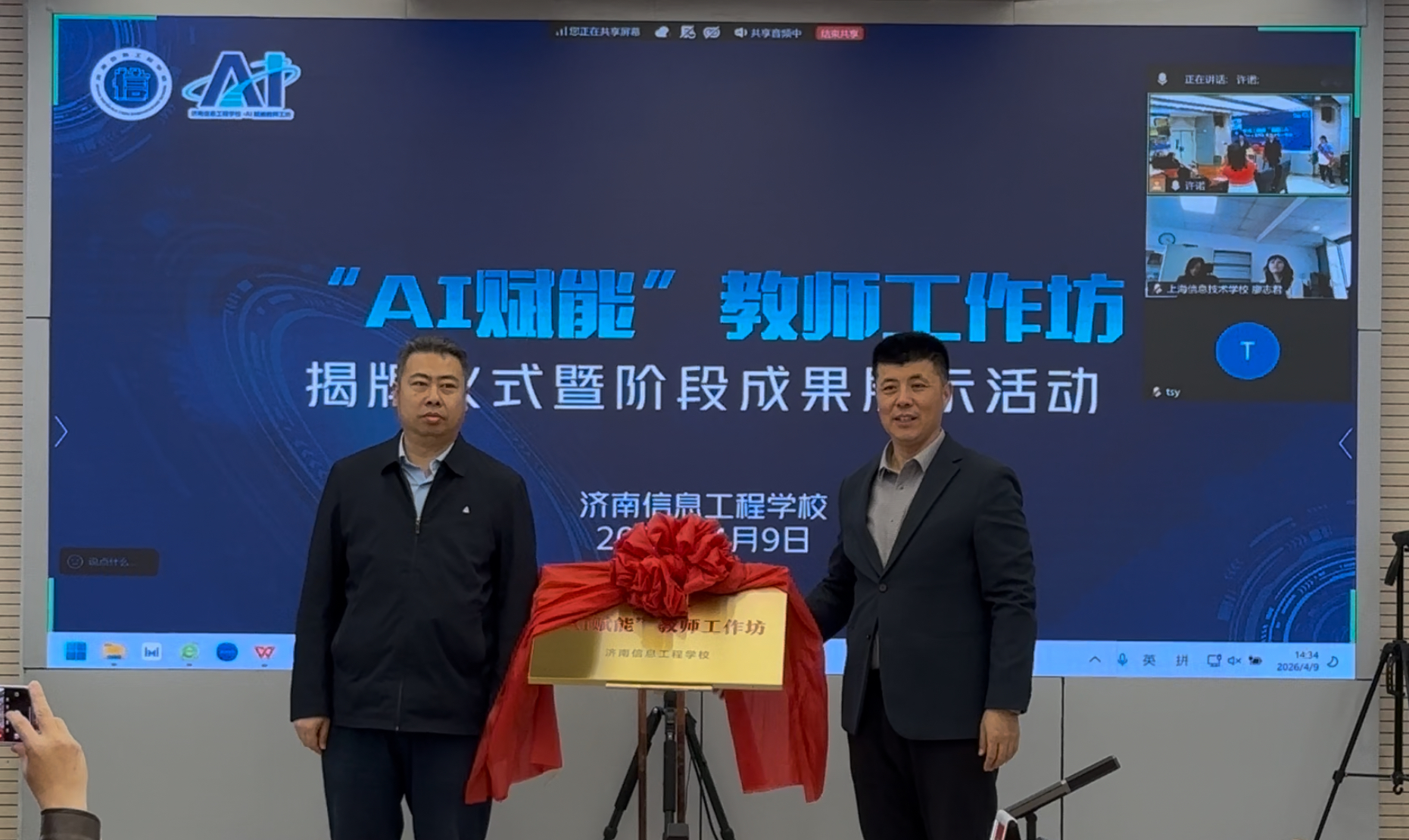 4月9日,济南信息工程学校“AI赋能”教师工作坊揭牌仪式暨阶段成果展示活动成功举办,活动采用济南、上海、宁夏三地线上线下同步联动的形式开展,汇聚跨区域教育力量,共探AI技术赋能职业教育教学新路径。