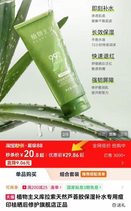 “便宜大碗”“肤感清爽”,既能补水保湿,又能“镇静消炎”“淡斑祛痘”——这让几十元一大碗的芦荟胶在电商平台上备受青睐,月销量动辄突破十万单。