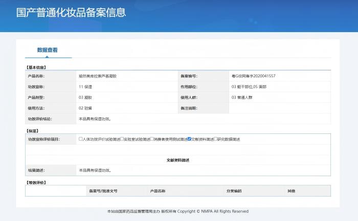 例如,一款在某电商平台销量万件以上的“瑜然美库拉索芦荟凝胶”,在商品页面上宣称可以“舒缓红敏”“晒伤修复”“祛痘消印”。但记者查询国家药监局官网发现,其备案功效仅为“保湿”。“冰肤之萃补水芦荟胶”同样只备案了保湿功效,却在多个电商平台上被宣传为具有“晒后修复”“祛痘消印”等功效。