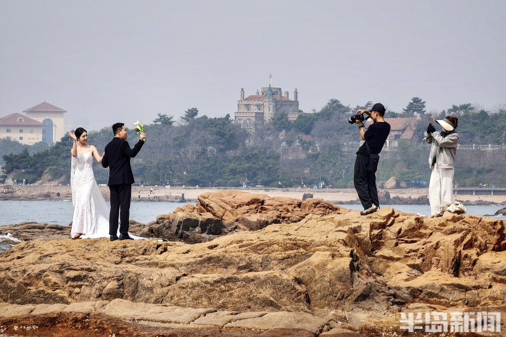 4月11日,青岛迎来晴好周末,气温舒适,海风轻柔。沿海一线处处是踏青赶海的市民游客。退潮时分,沙滩上聚集了不少拎着小桶、手持铲子“赶海”的人。礁石上、沙滩边、木栈道旁,随处可见身着白纱的新人在摄影师的指导下定格幸福瞬间。而更多的是漫步观景的市民,悠闲地享受着这静好的春光。(半岛全媒体记者吴璟)
