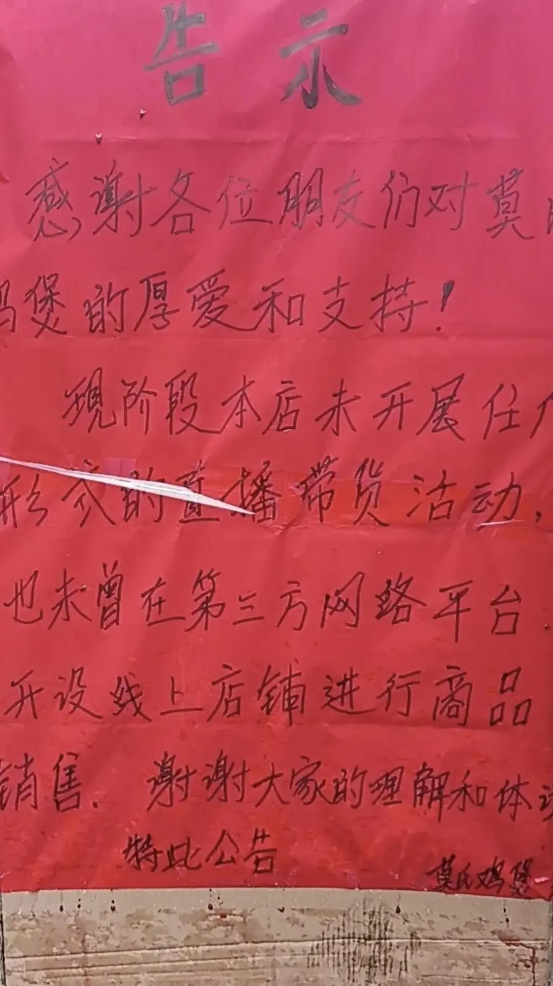 ▲莫氏鸡煲发布的告示