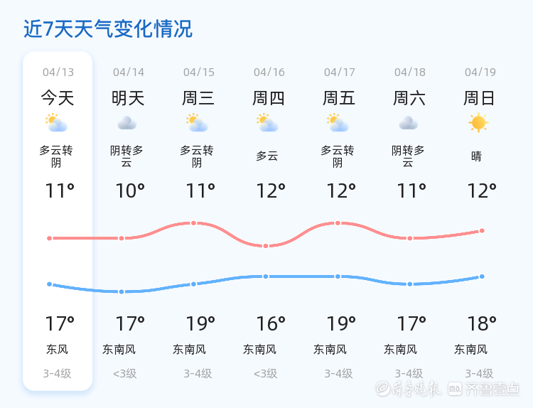 明日(4月14日),日照市天气将转为阴转多云,气温与今日持平,维持在10℃至17℃之间。风向将转为东南风,风力较今日有所增强,建议市民注意防范。