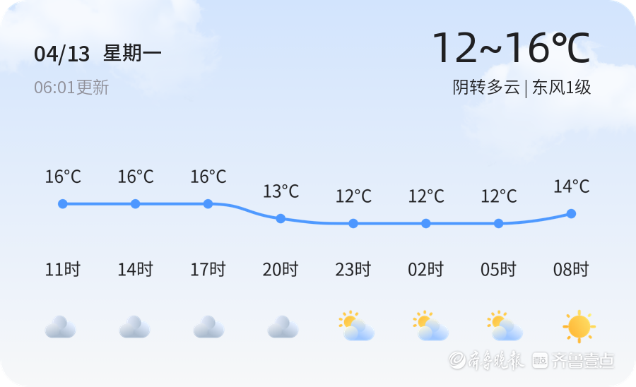 今日是4月13日,星期一,农历二月廿六。枣庄市天气阴转多云,气温在12℃至16℃之间,东风1级,空气湿度较高,为90%。PM2.5浓度为29,空气质量等级为优。今天的天气较为舒适,适合市民户外活动。建议市民出行时随身携带雨具,以备不时之需。