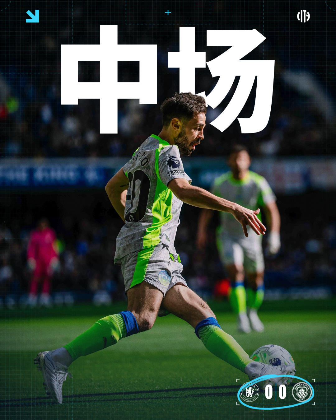 这场焦点战上半场波澜不惊。比赛一开始,掌握了近七成控球率的曼城就控制了节奏,一直从边路来回传切,不断给切尔西施压。