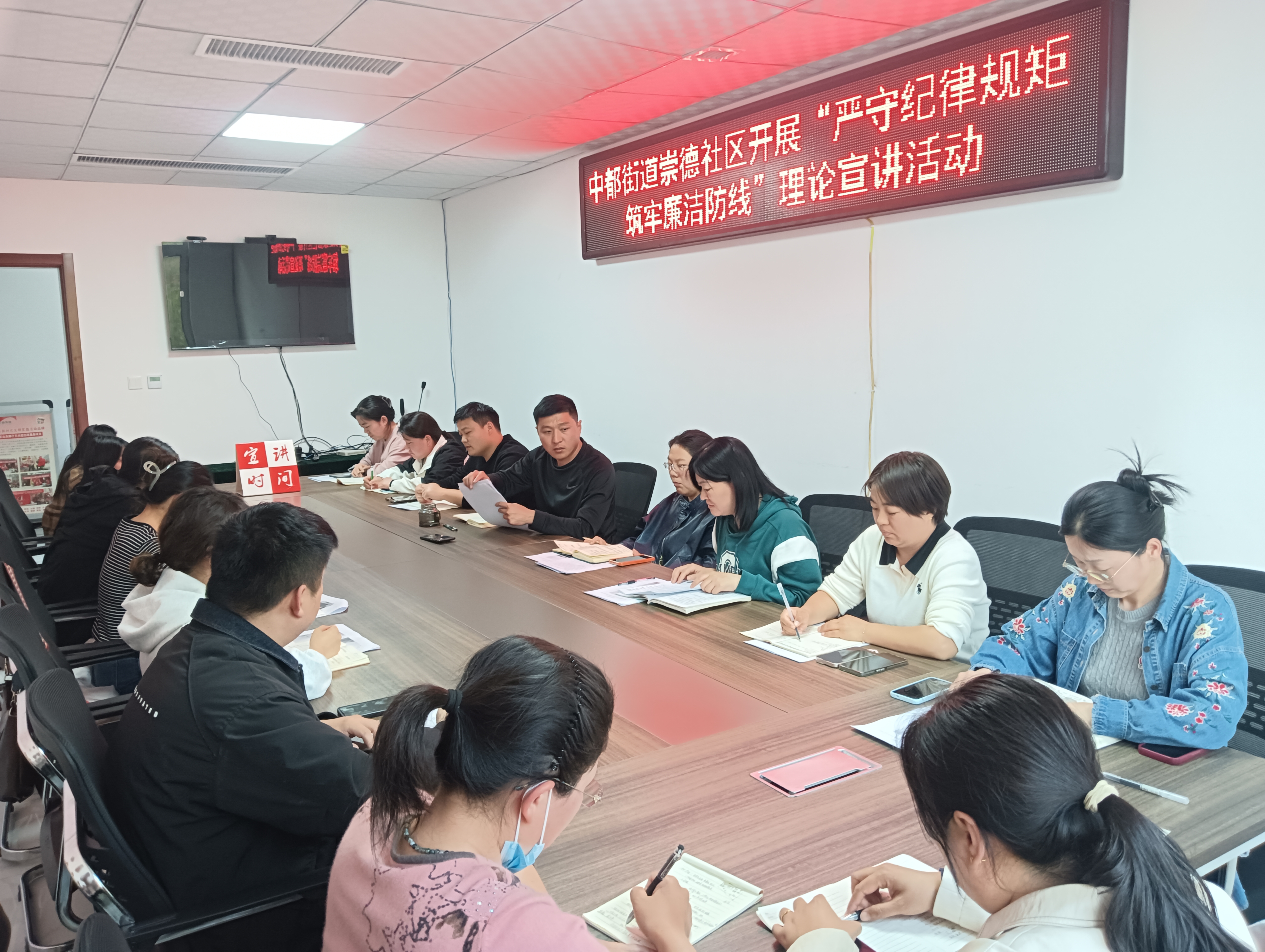 为进一步加强社区党员干部的纪律意识和规矩意识,扎实推进党风廉政建设,营造风清气正、干事创业的良好政治生态,近日,汶上县中都街道崇德社区组织开展了以“严守纪律规矩 筑牢廉洁防线”为主题的理论宣讲活动。